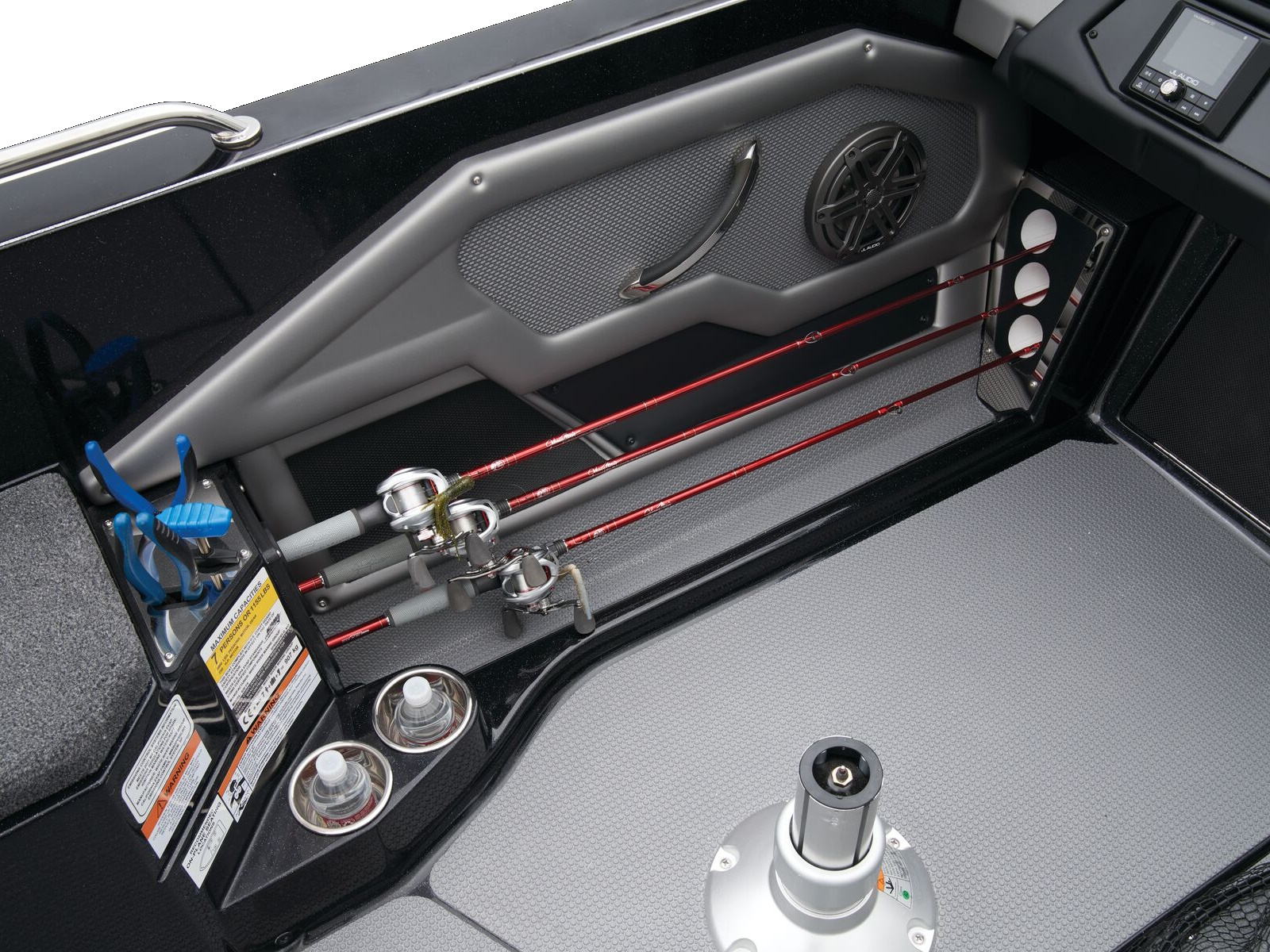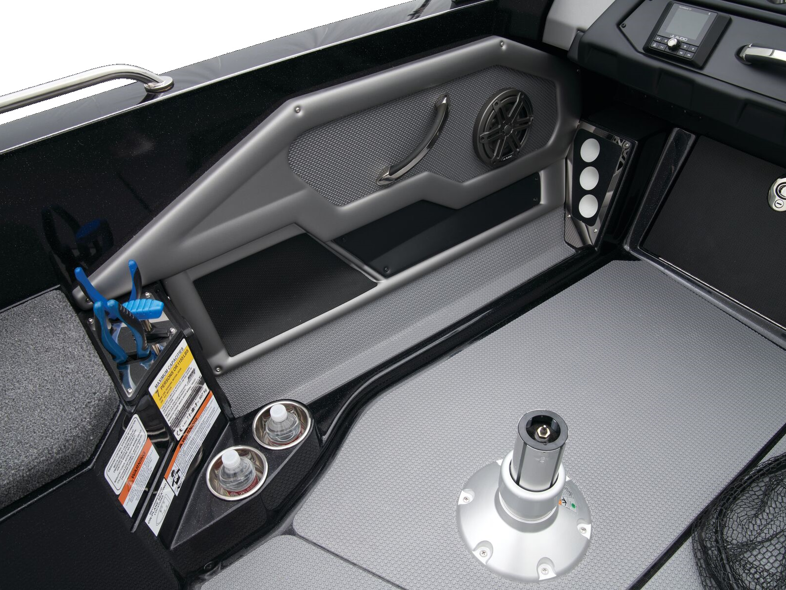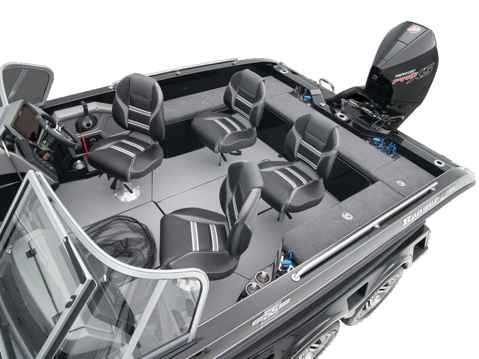 Ranger Cup Equipped models enjoy huge electronics units, a walk thru windshield, the trolling motor of your choice, three lithium trolling motor batteries and visual upgrades like polished Challenger wheels. Brushed, CNC-machined aluminum grab handles and accents deliver handsome touches that match the custom-designed, stitched trim throughout that replaces plastic. Twin glove boxes in the passenger console give more space, as do the front storage boxes that have been enlarged to their maximum size. Complementing the wealth of new features are time-honored and perfected Ranger build protocols and quality, from our upright and level flotation for more power, more smarts, and more control.