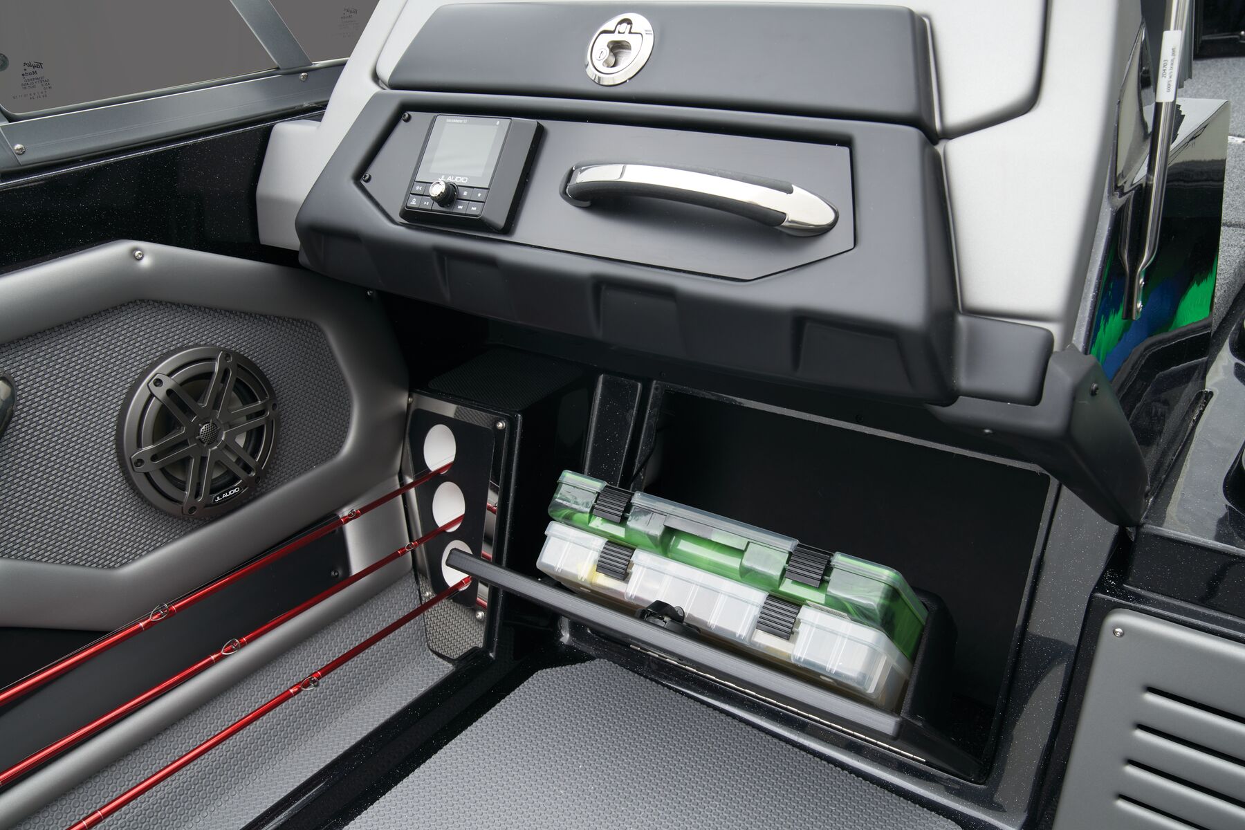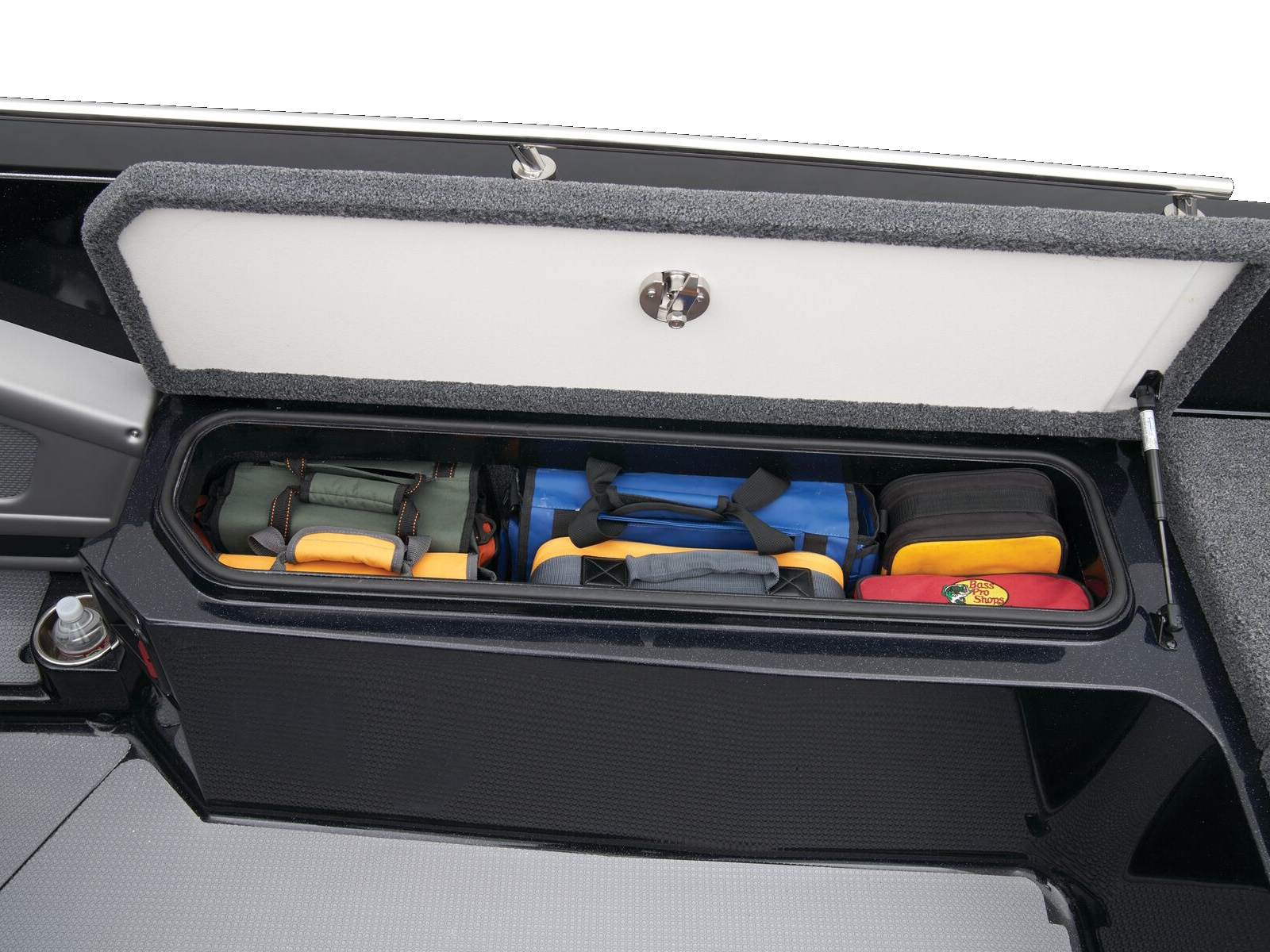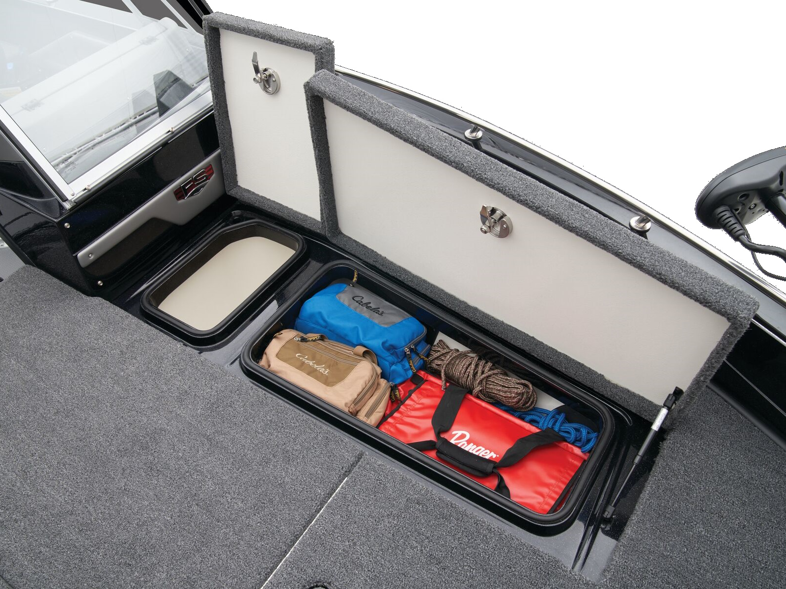 Ranger Cup Equipped models enjoy huge electronics units, a walk thru windshield, the trolling motor of your choice, three lithium trolling motor batteries and visual upgrades like polished Challenger wheels. Brushed, CNC-machined aluminum grab handles and accents deliver handsome touches that match the custom-designed, stitched trim throughout that replaces plastic. Twin glove boxes in the passenger console give more space, as do the front storage boxes that have been enlarged to their maximum size. Complementing the wealth of new features are time-honored and perfected Ranger build protocols and quality, from our upright and level flotation for more power, more smarts, and more control.