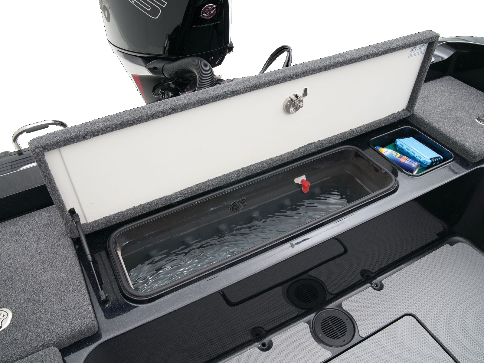 - Recirculating aerated livewell and baitwell w/ filter screens, automatic timers and livewell pump-out