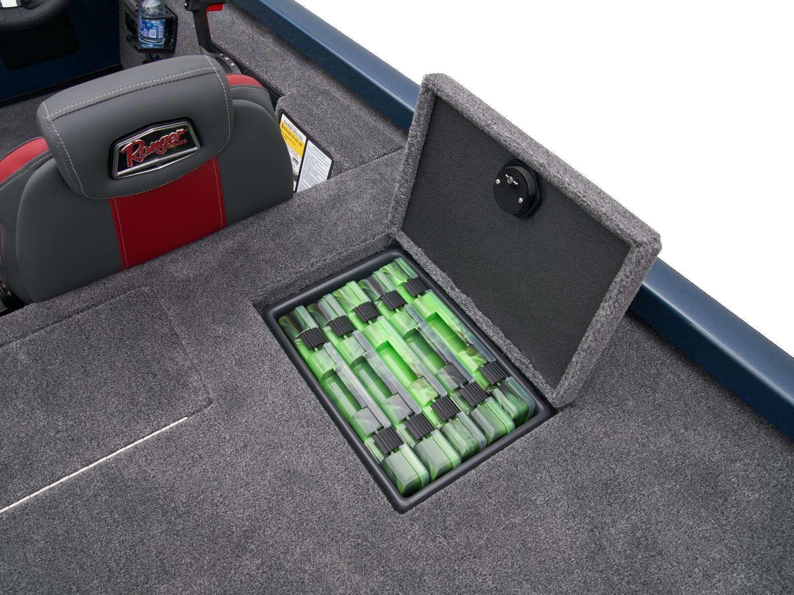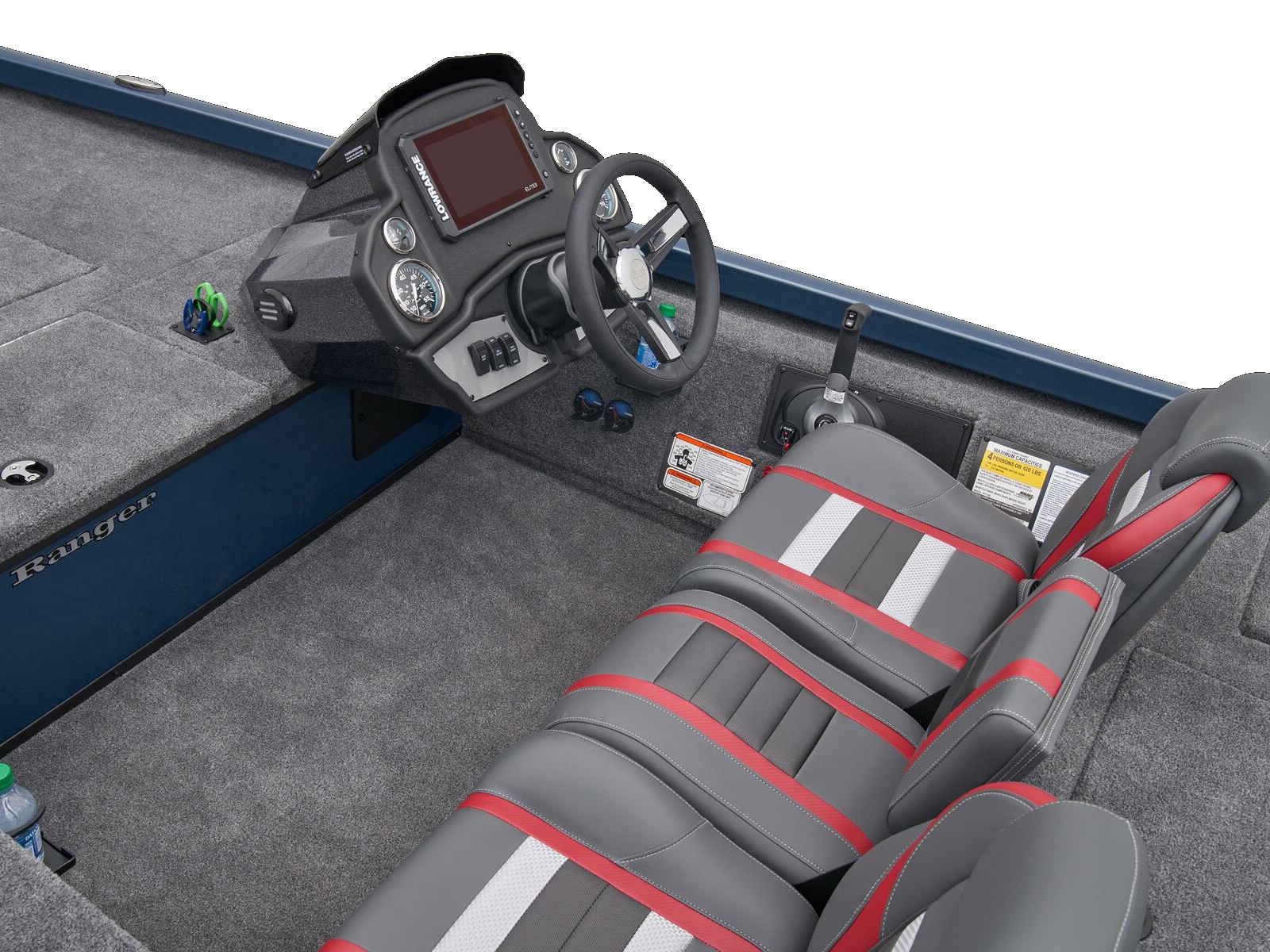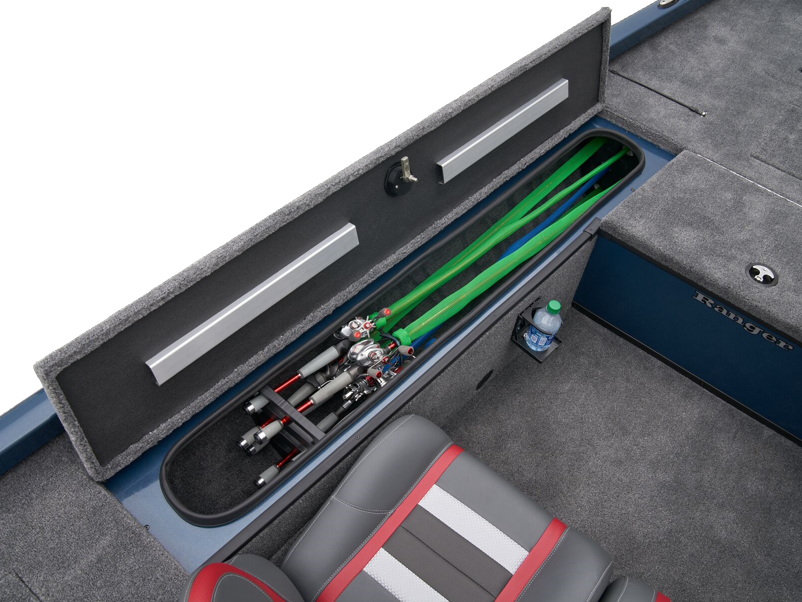 Up front, three-across front seating offers room for spider-rigging or shooting docks while an 8-foot, 6-inch rod box safely holds your longer sticks, and the wider design of the bow means you won't be stepping on your rods all day. An in-deck bow tackle storage box keeps gear close at hand, and a divided, timed, and aerated livewell is just underfoot. The rear deck features two more tackle storages and another livewell along with plenty of room to fish. Underneath the bench seating is even more storage while the cantilevered fiberglass console offers a surprising amount of legroom. Rounding out this capable package is a custom-built Ranger Trail® trailer that’s made specifically for this hull with premium wheels and a dose of Road Armor Equipped® coating for years of protection and peace of mind. Everywhere you look, the RT178C boasts Unmatched Value And Versatility.