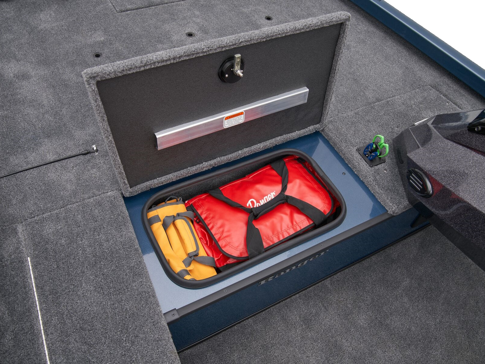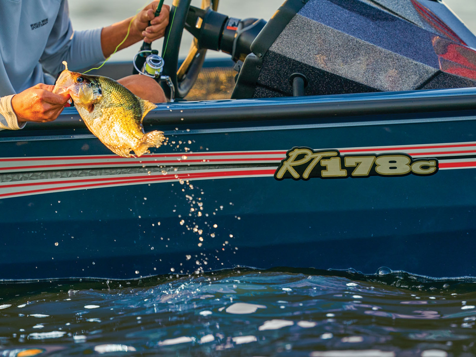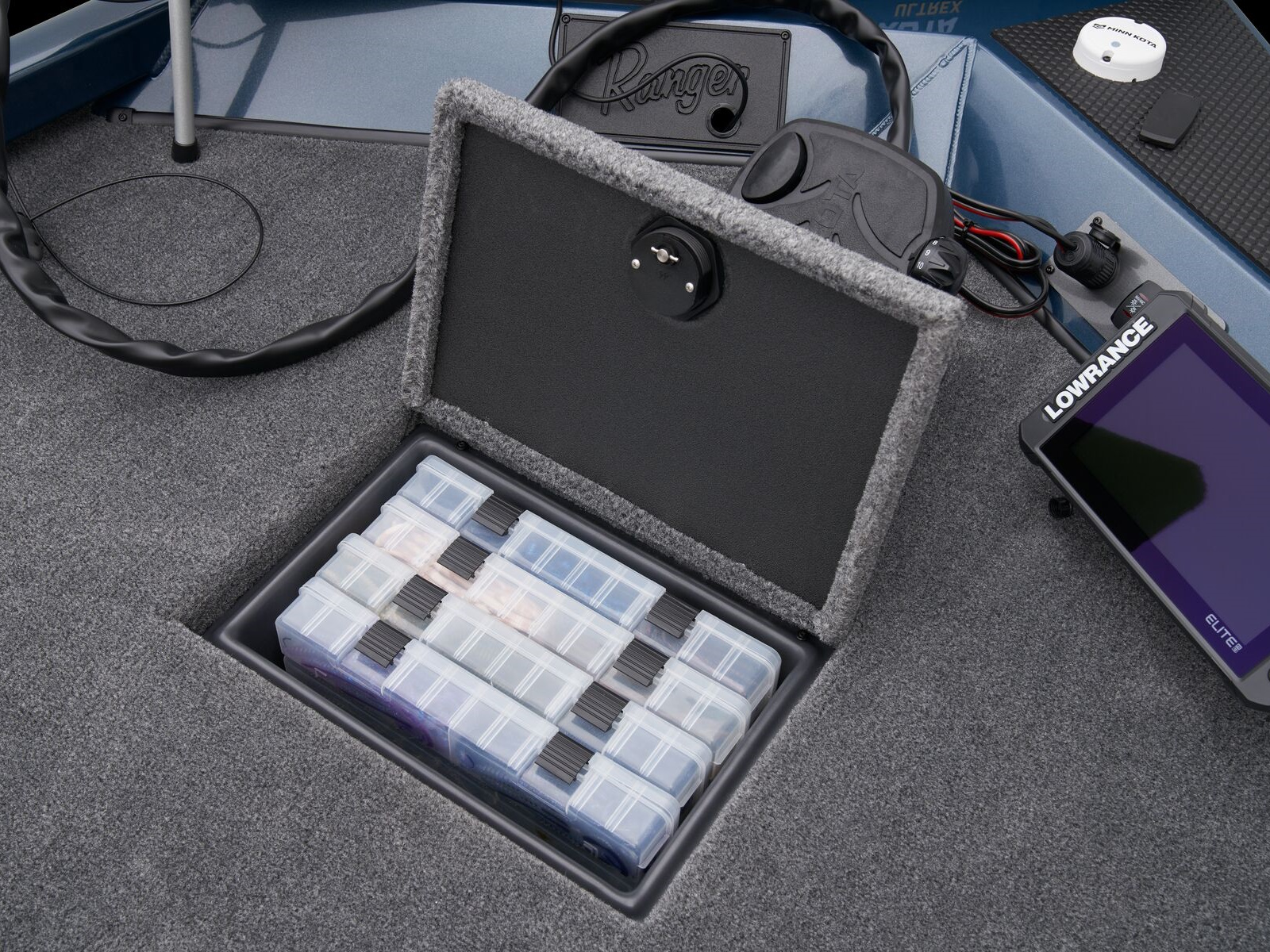 Up front, three-across front seating offers room for spider-rigging or shooting docks while an 8-foot, 6-inch rod box safely holds your longer sticks, and the wider design of the bow means you won't be stepping on your rods all day. An in-deck bow tackle storage box keeps gear close at hand, and a divided, timed, and aerated livewell is just underfoot. The rear deck features two more tackle storages and another livewell along with plenty of room to fish. Underneath the bench seating is even more storage while the cantilevered fiberglass console offers a surprising amount of legroom. Rounding out this capable package is a custom-built Ranger Trail® trailer that’s made specifically for this hull with premium wheels and a dose of Road Armor Equipped® coating for years of protection and peace of mind. Everywhere you look, the RT178C boasts Unmatched Value And Versatility.