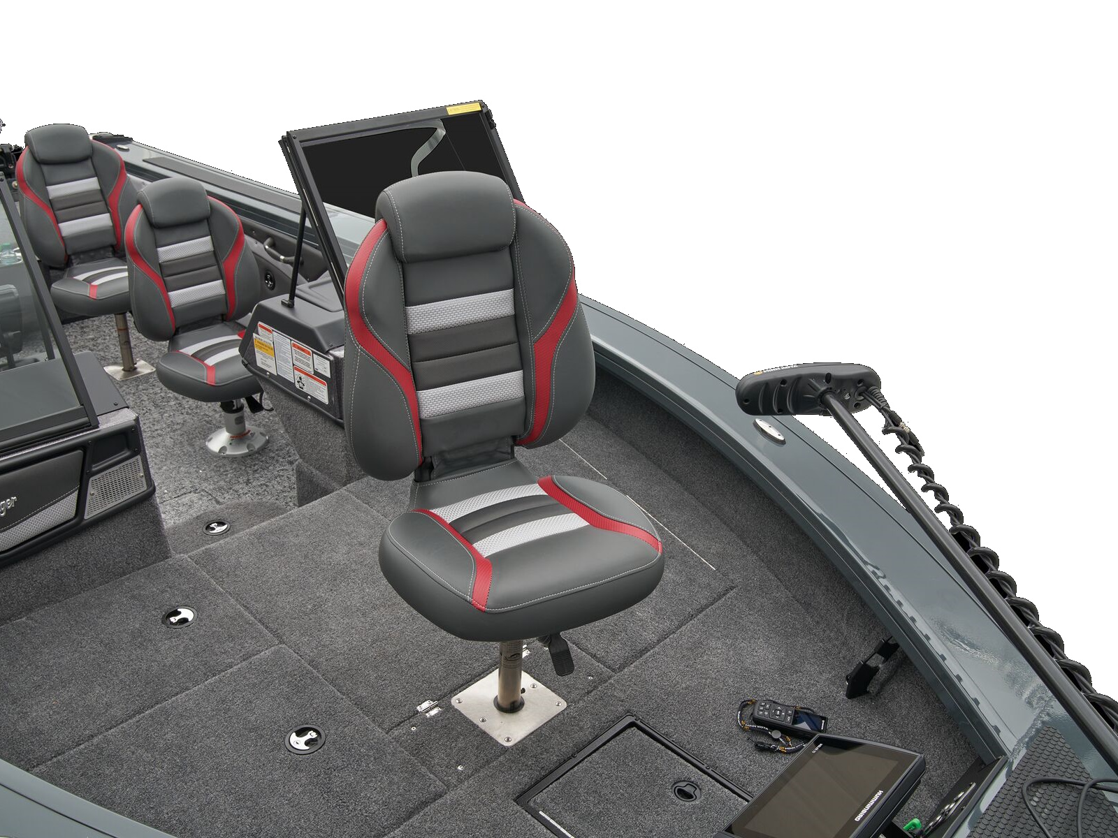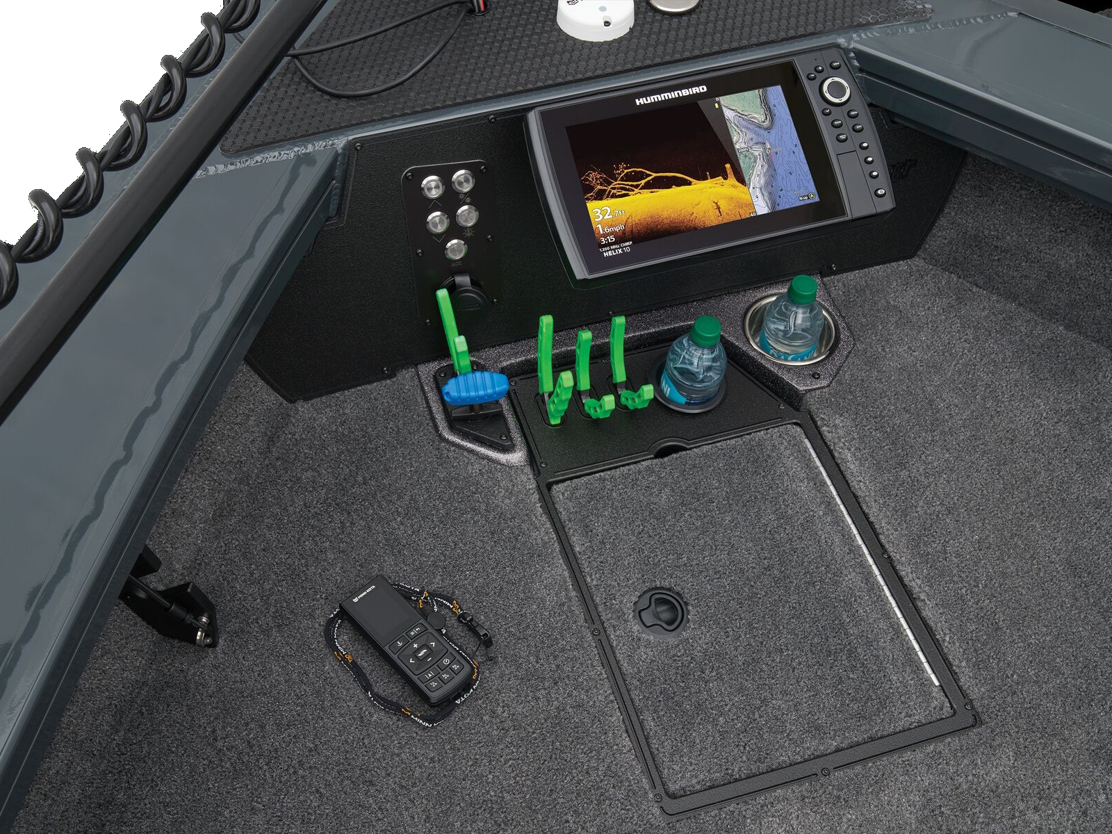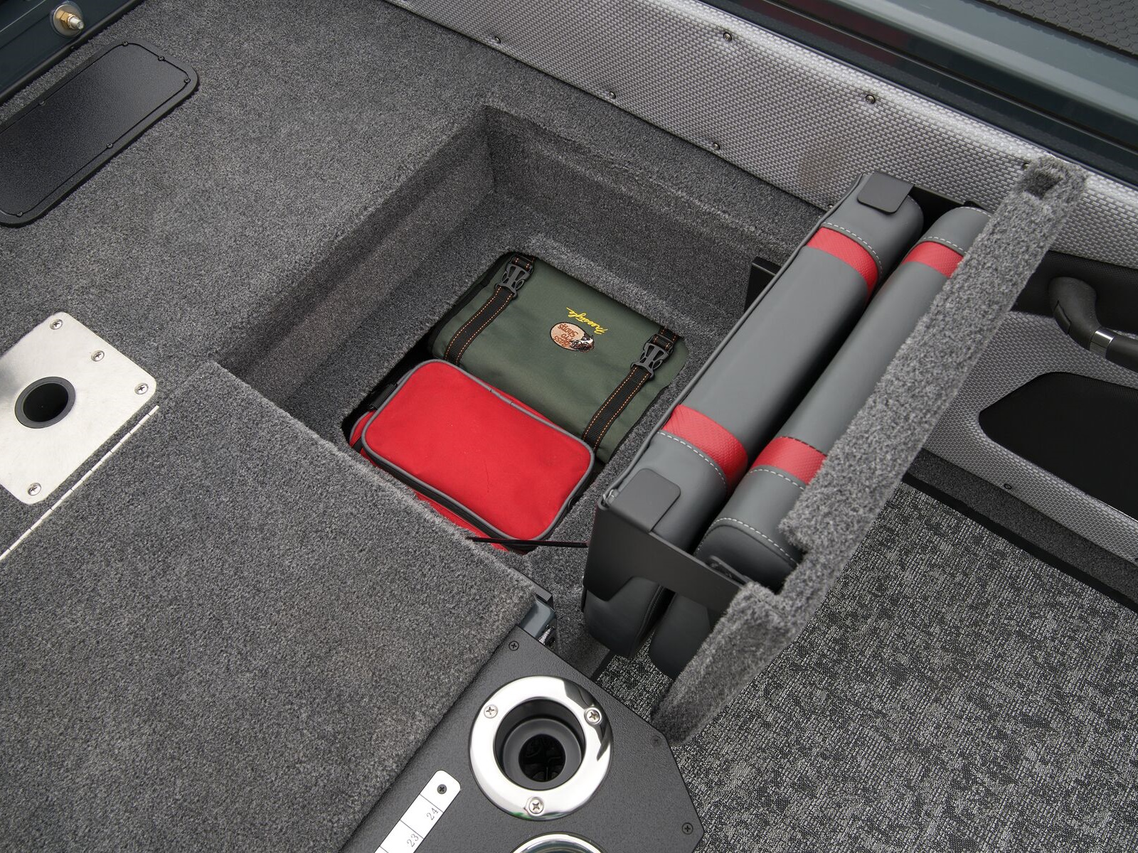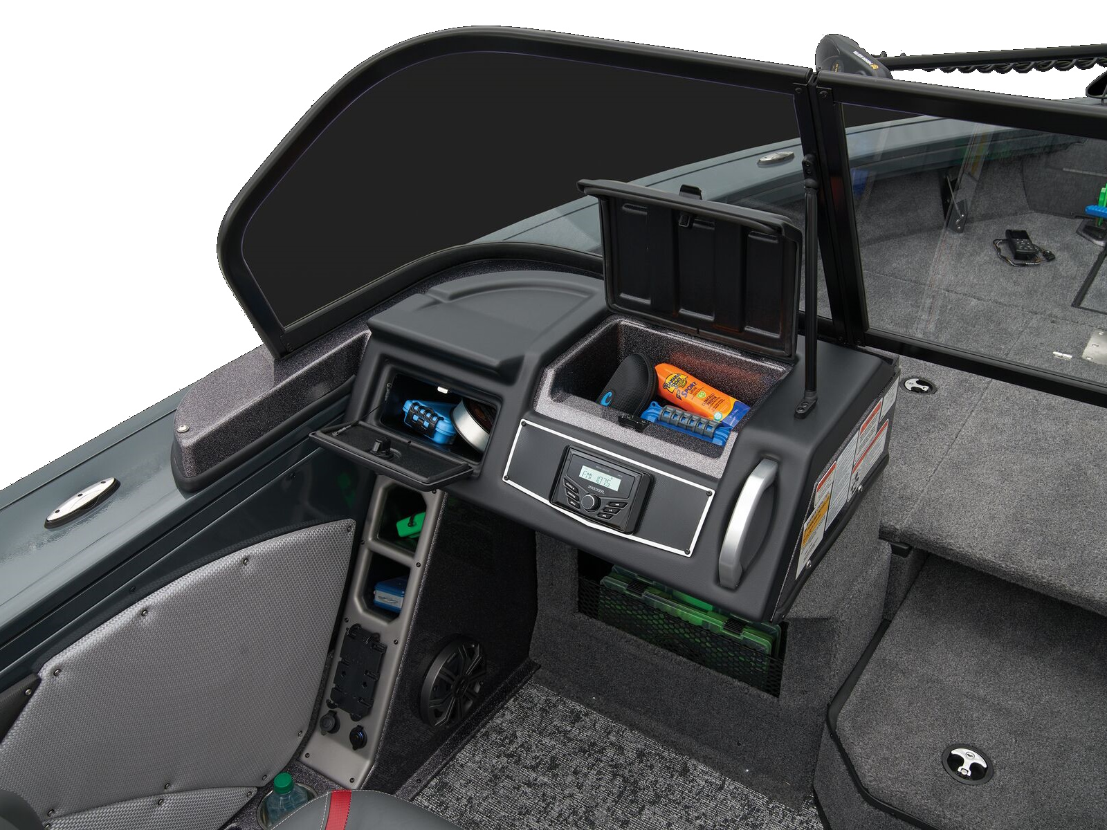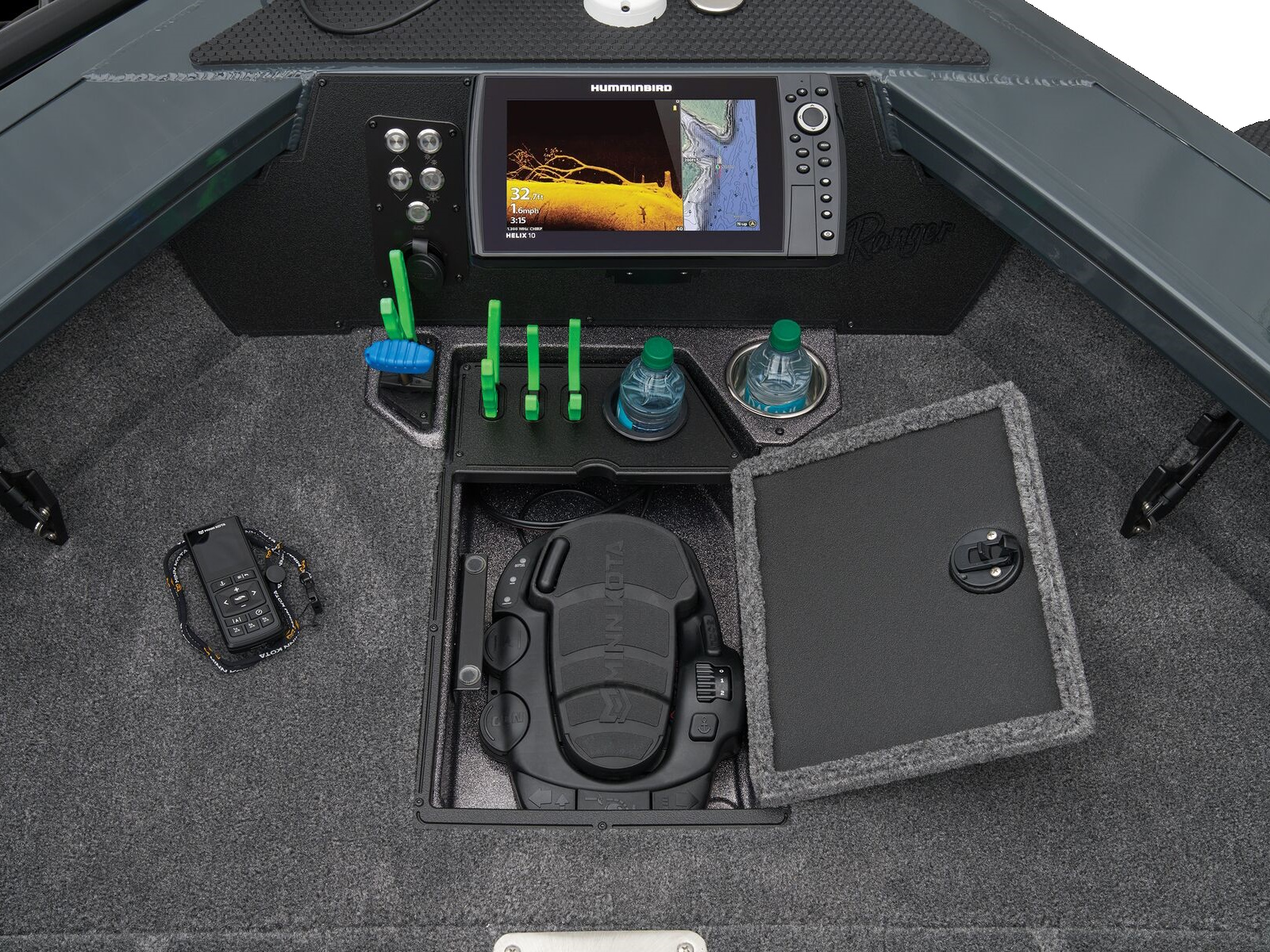 - Trolling Motor pedal storage (hinged lid over recessed trolling motor pedal, for use with digital-steer TMs)