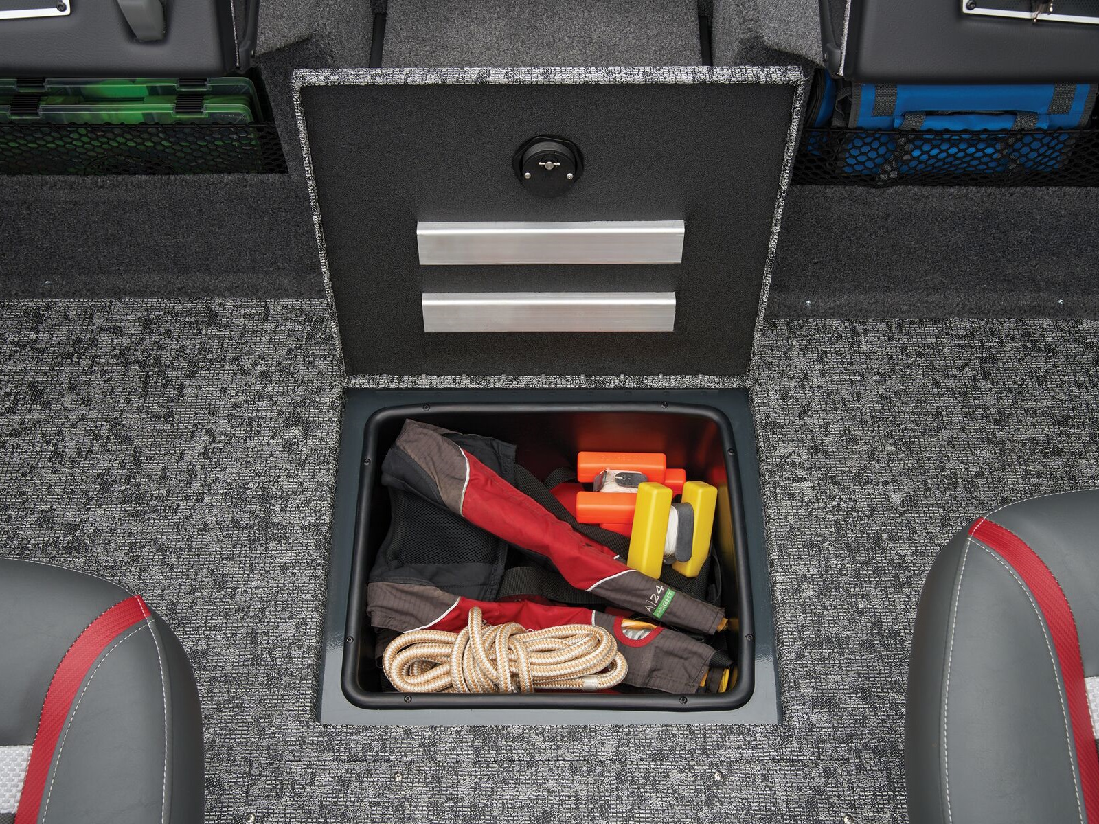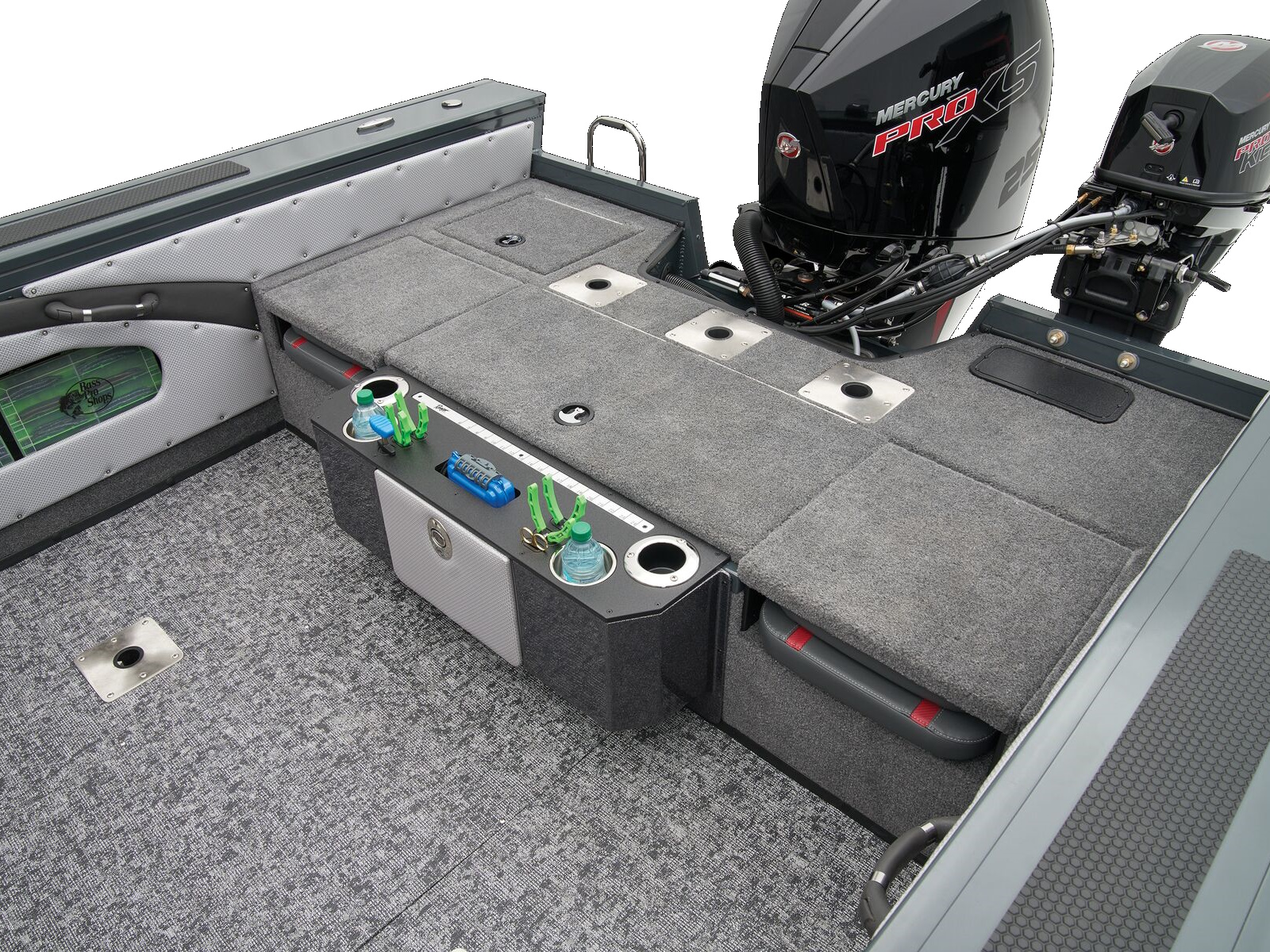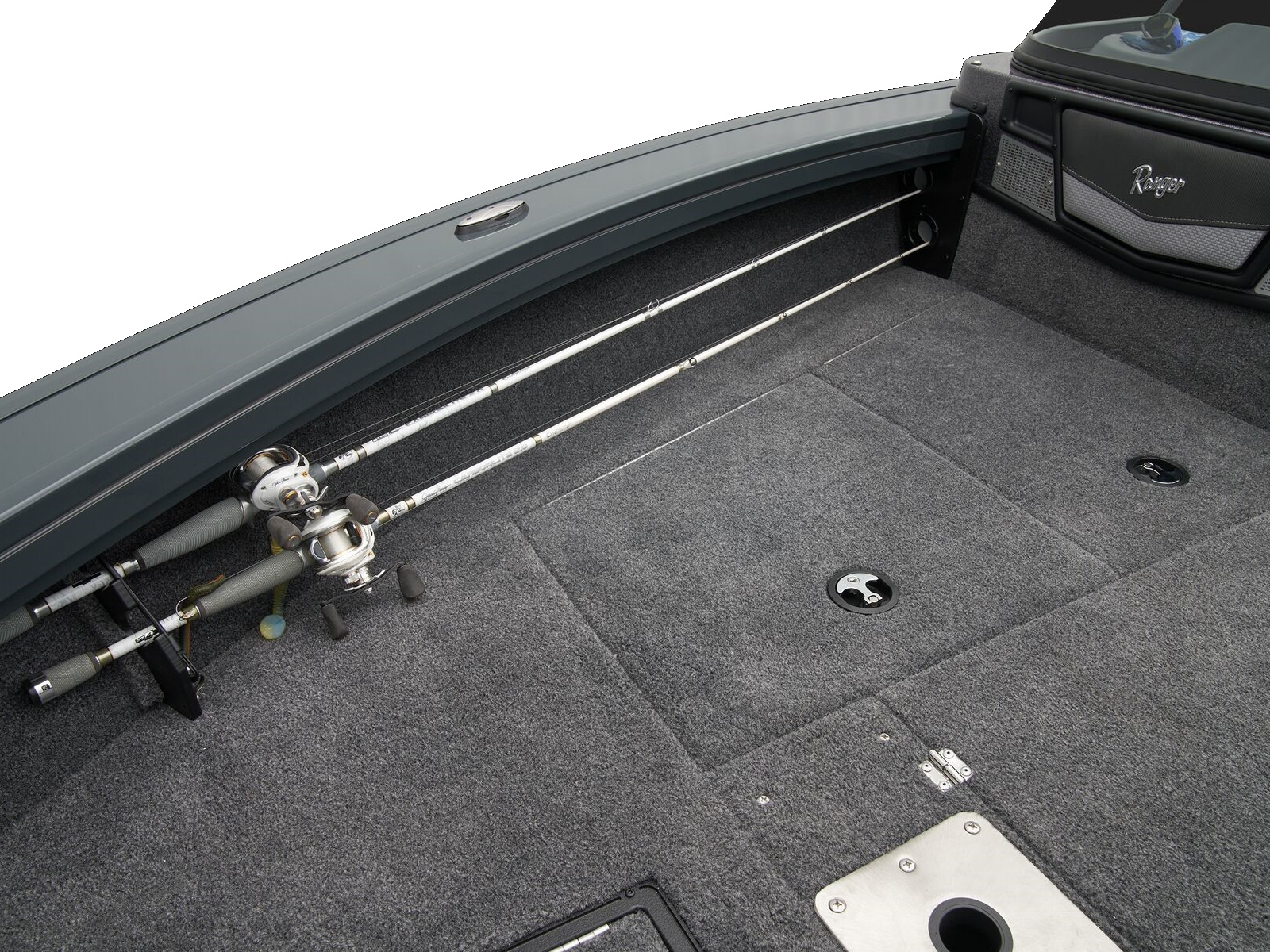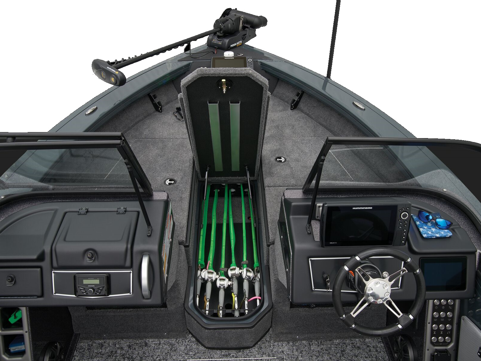 - Trolling Motor pedal storage (hinged lid over recessed trolling motor pedal, for use with digital-steer TMs)