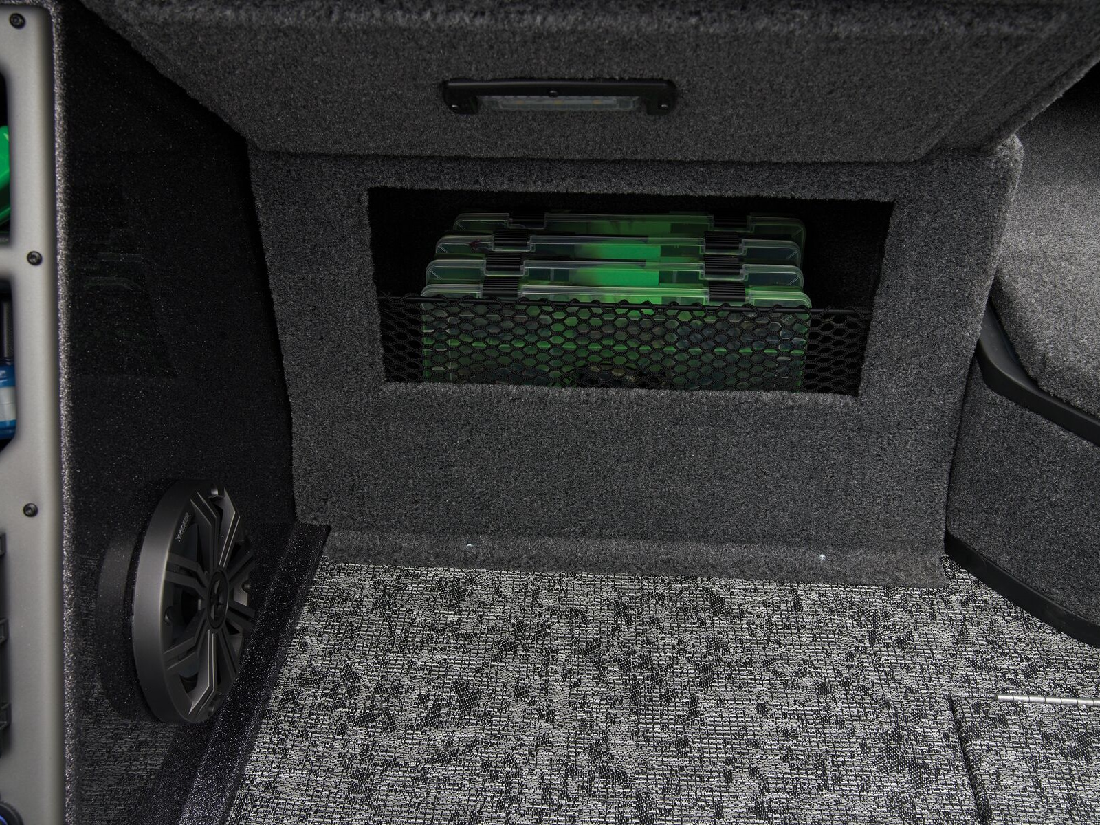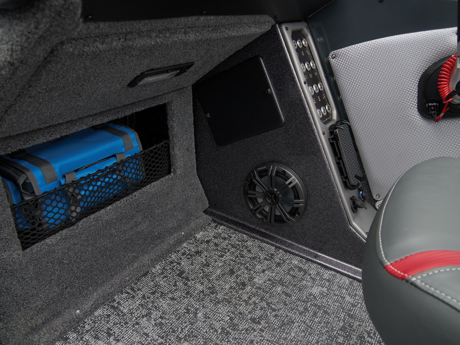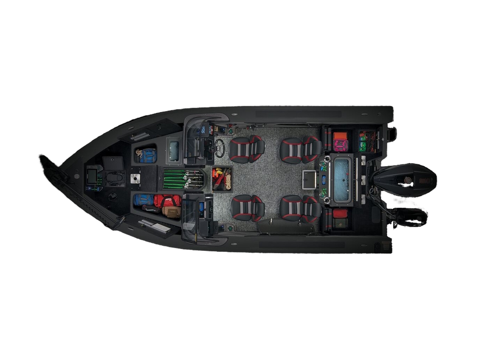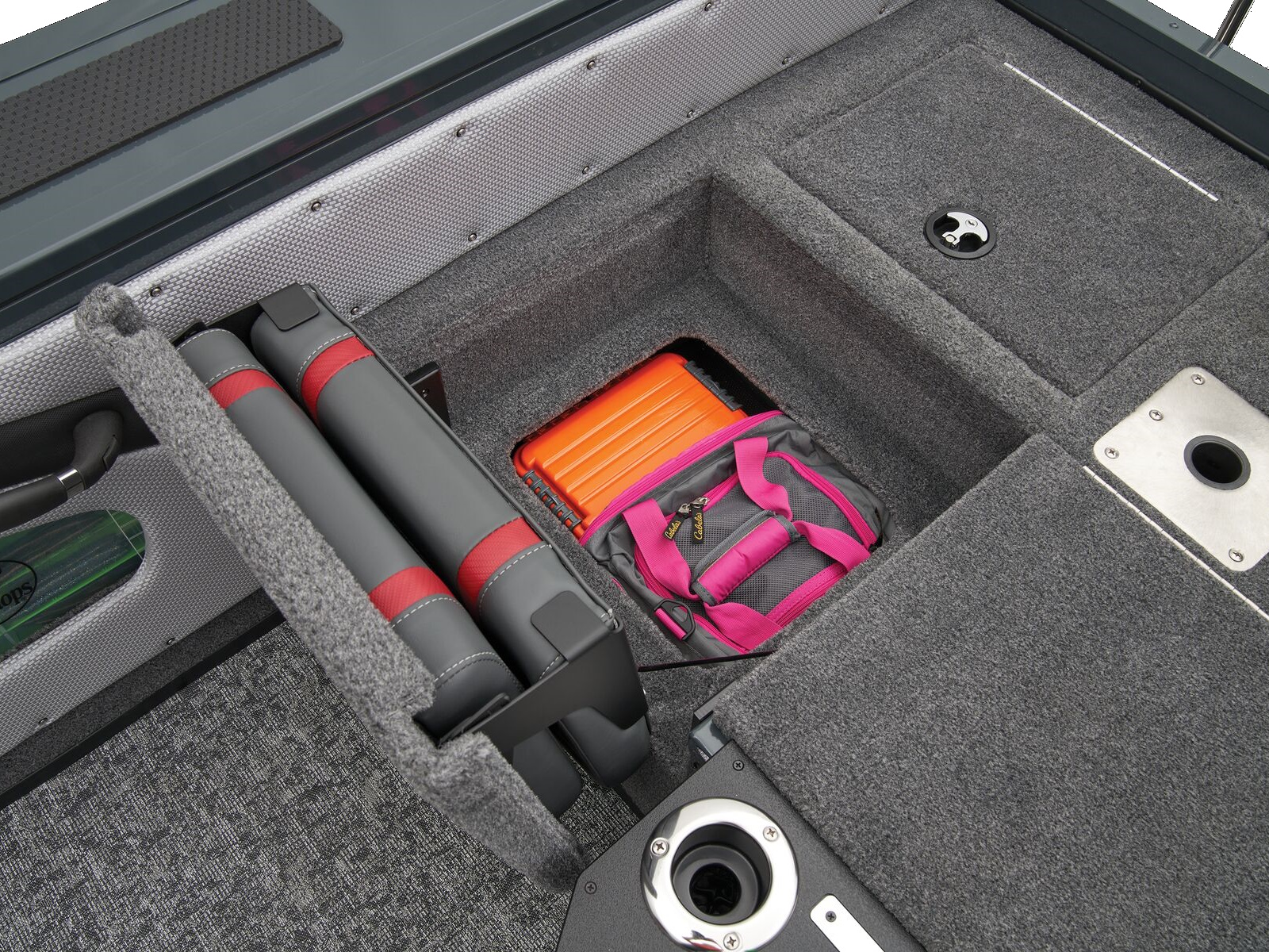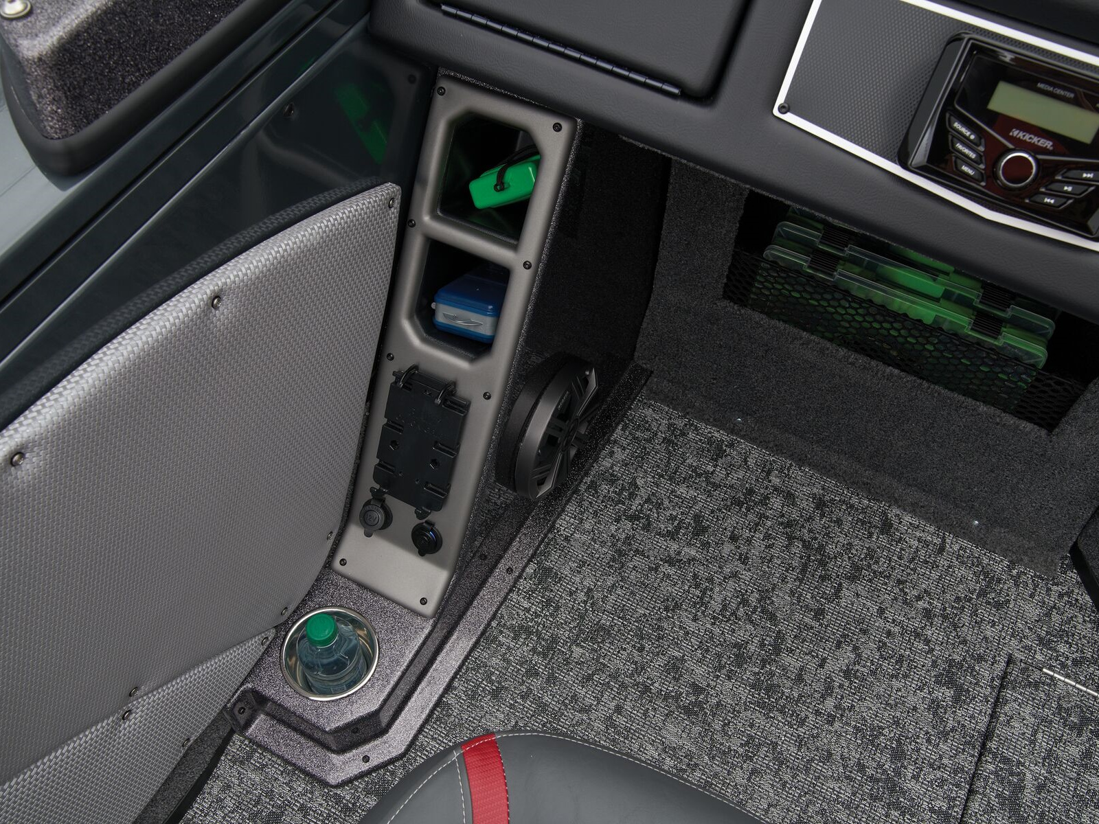 - Trolling Motor pedal storage (hinged lid over recessed trolling motor pedal, for use with digital-steer TMs)