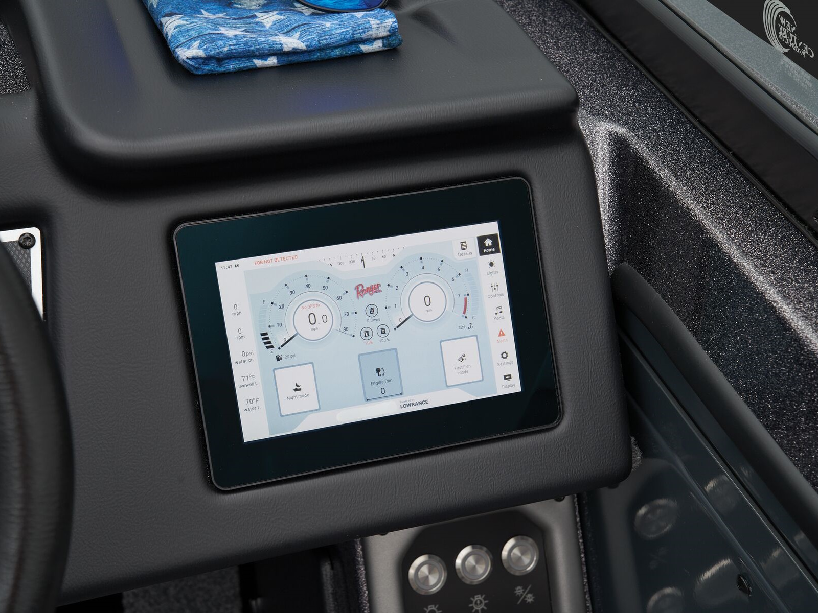 - Ranger System Monitor - 7" Touchscreen that displays all boat and engine data at a glance, eliminating the need for gauges