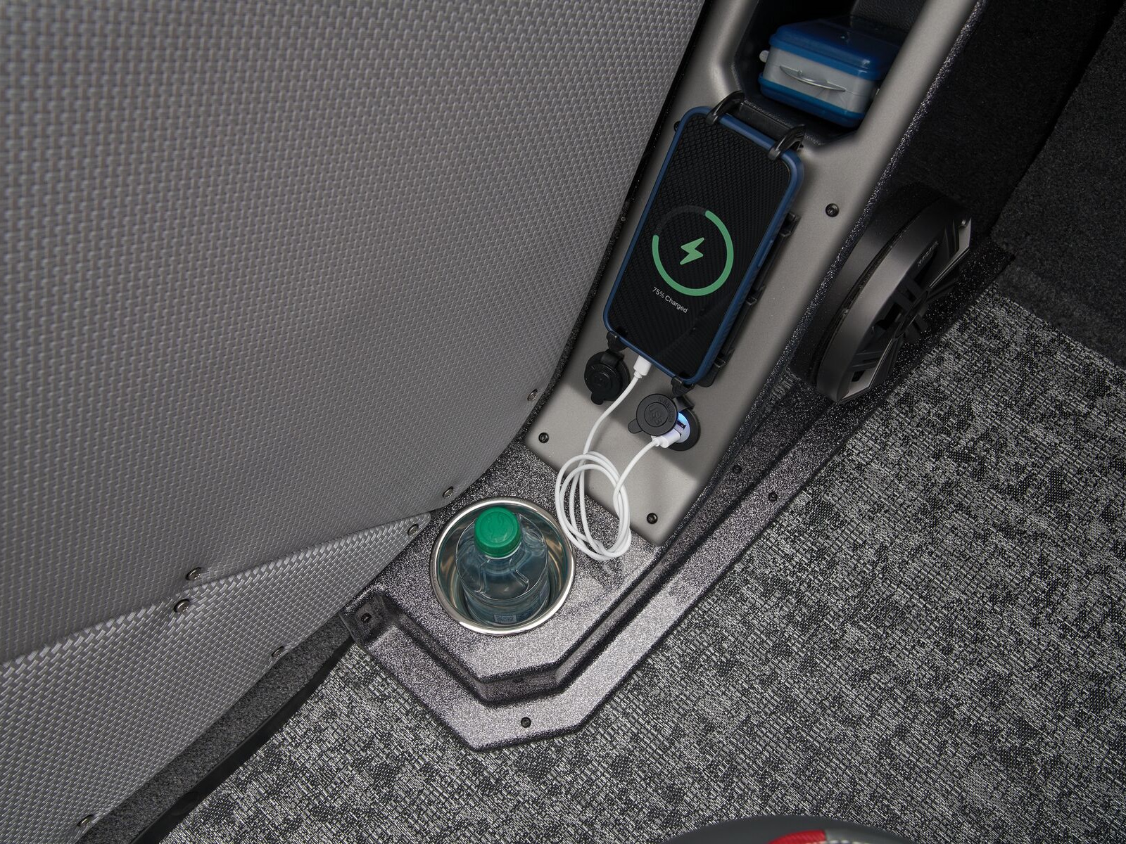 - 12V power and USB outlets on port and starboard side panels