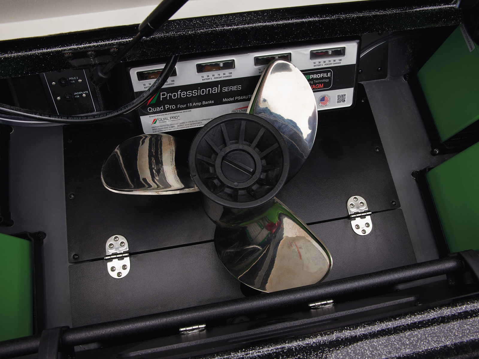 - Dual Pro™ on-board 15A x 4 bank charger w/ auto-detect technology & remote charging port