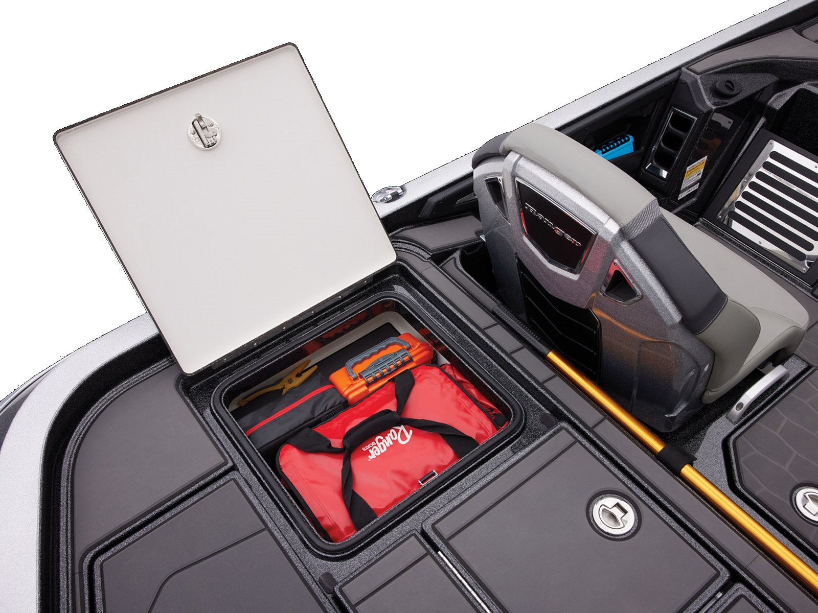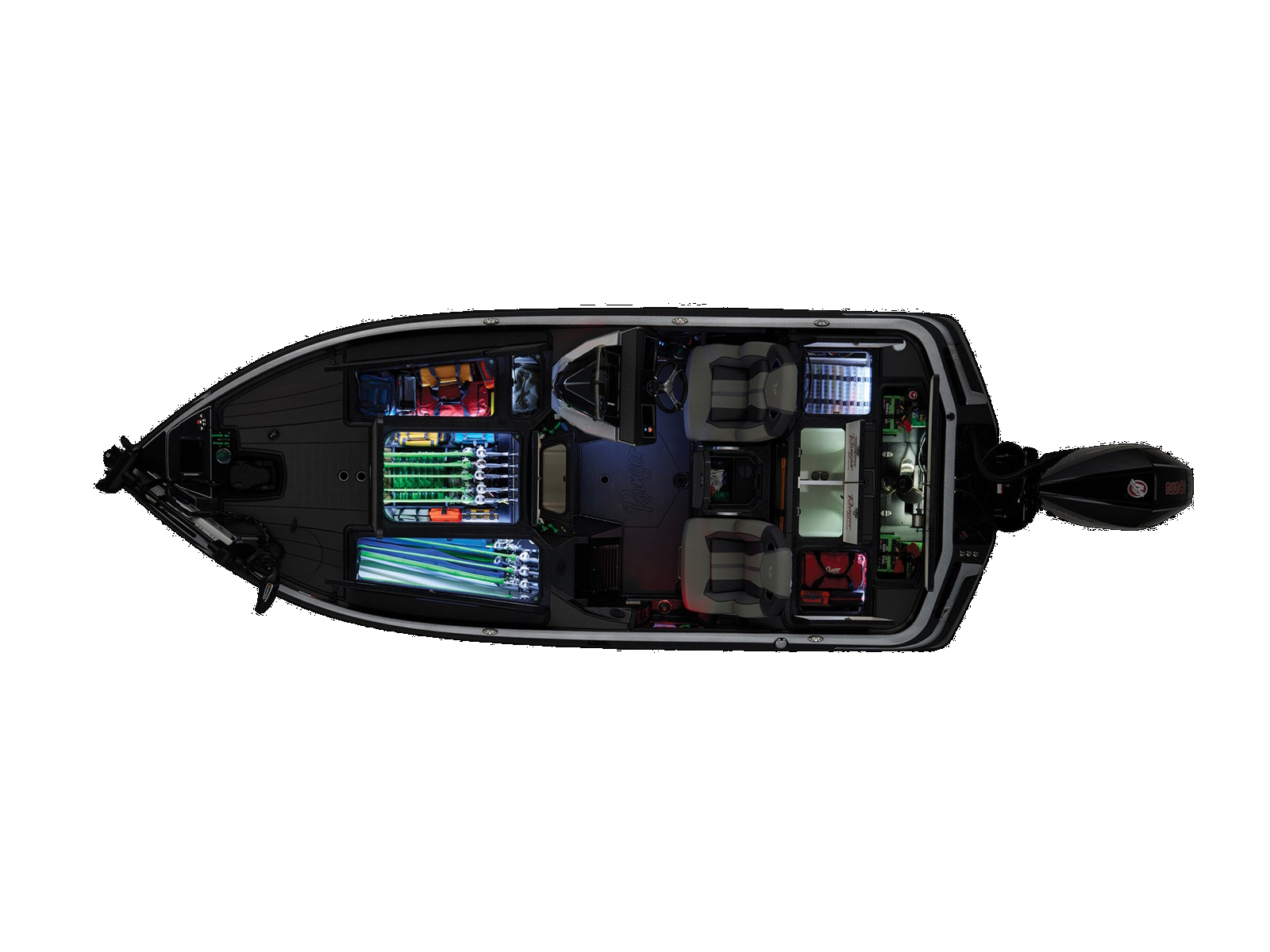 - Ranger Echelon™ Rod Storage System - 3-tiered port & 2-tiered starboard rod lockers