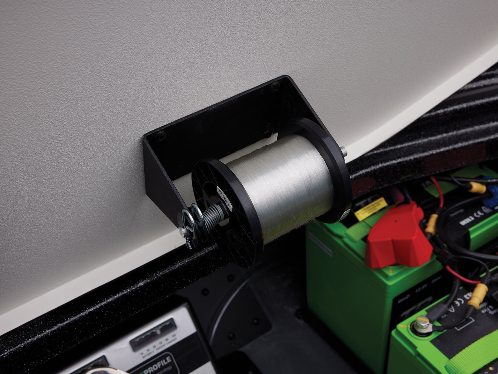 - Integrated line spooling station under battery lid