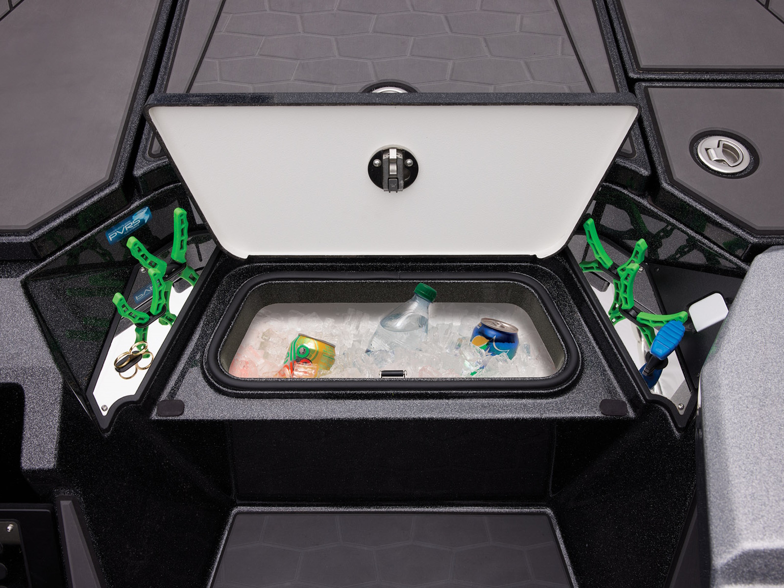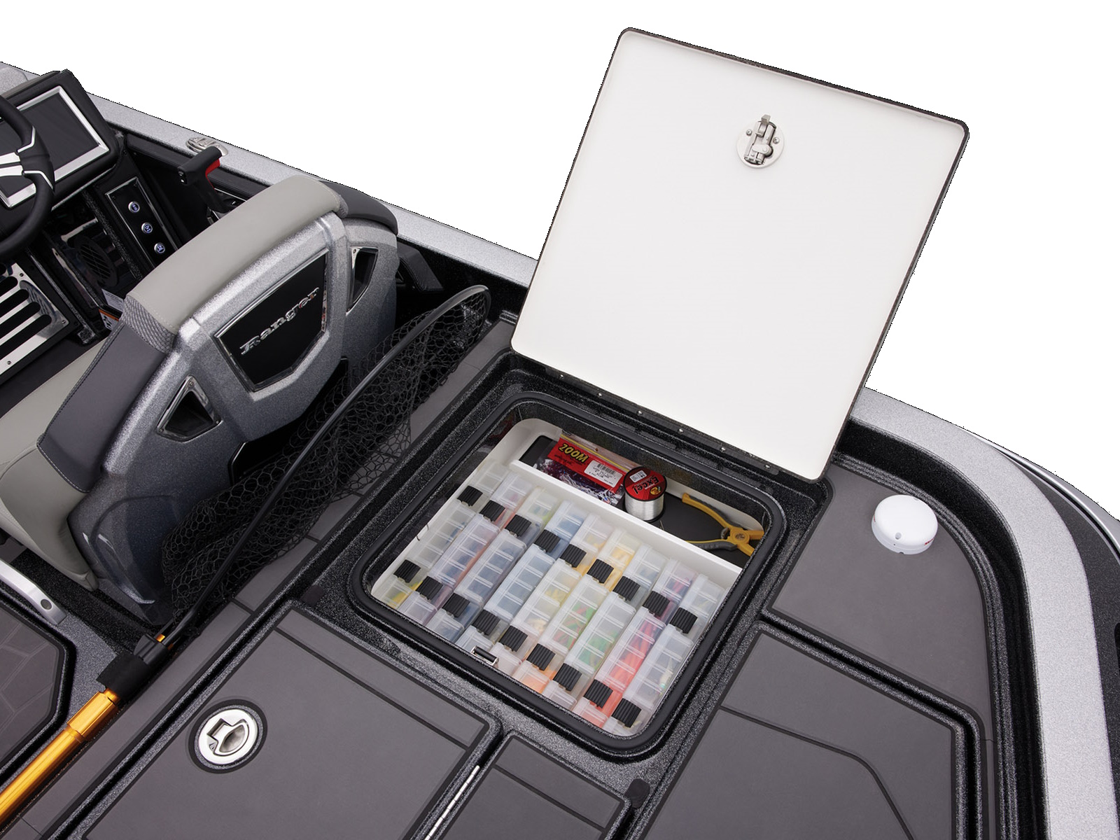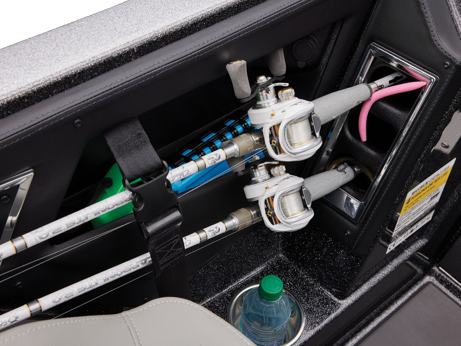 - Integrated center-storage rod & tackle management system