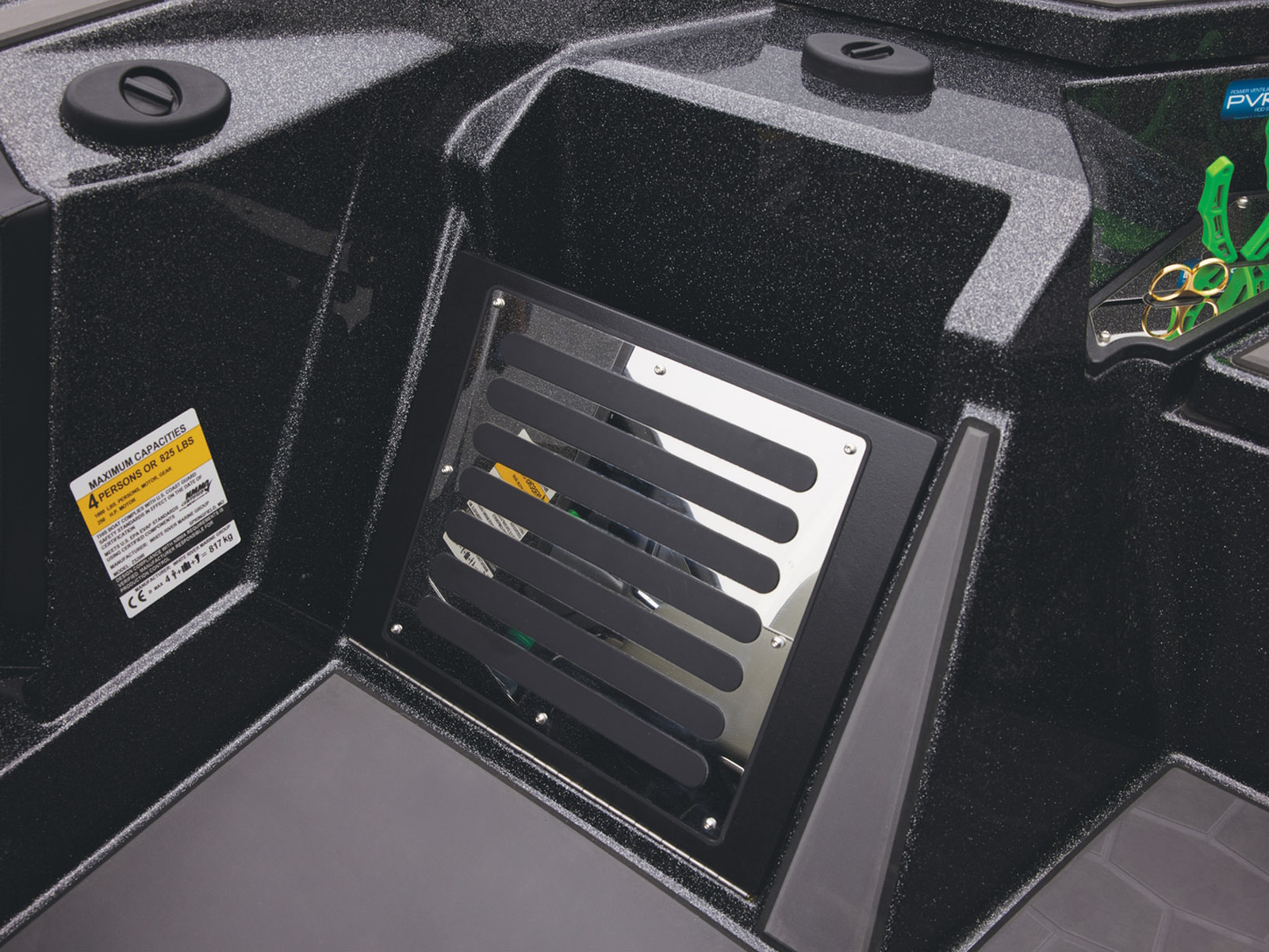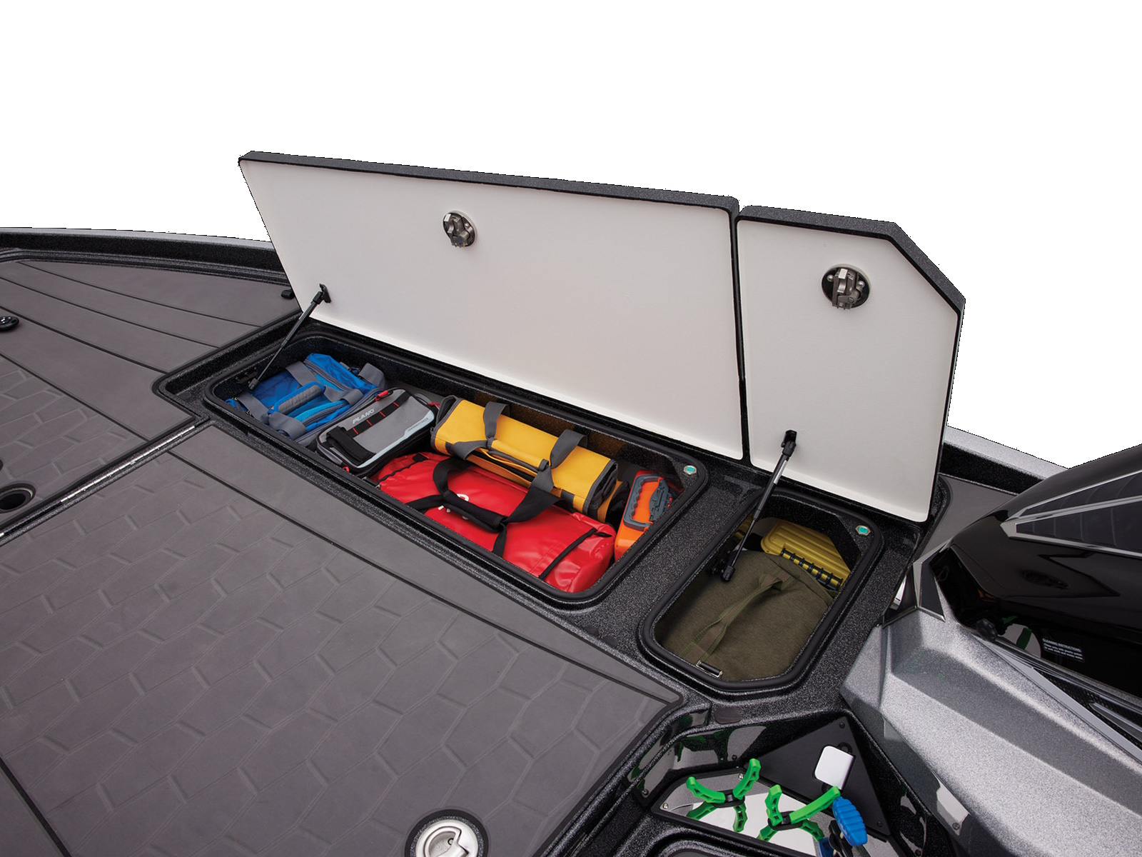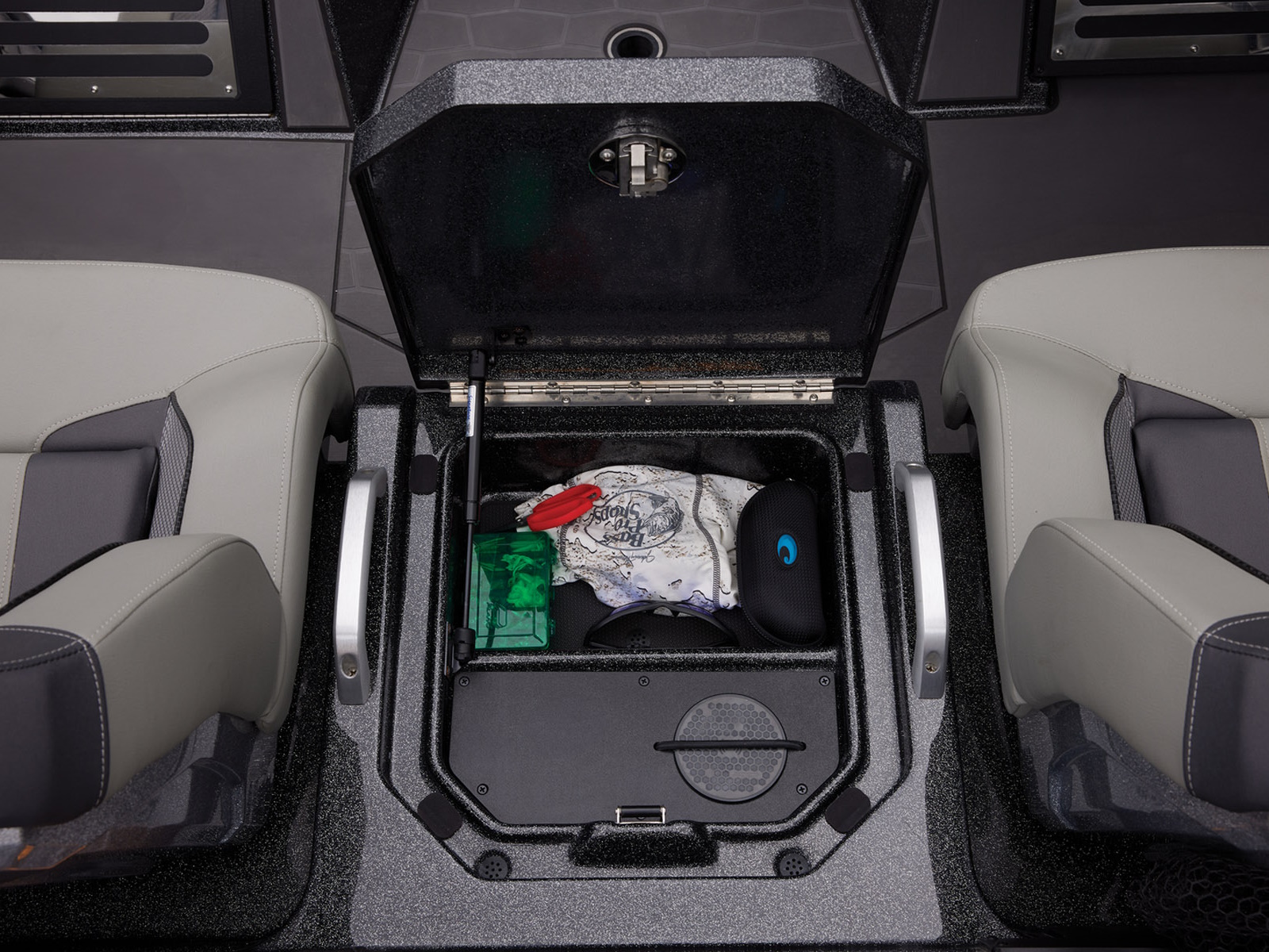 - Integrated center-storage rod & tackle management system