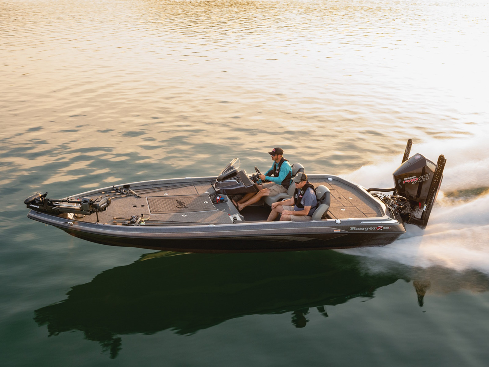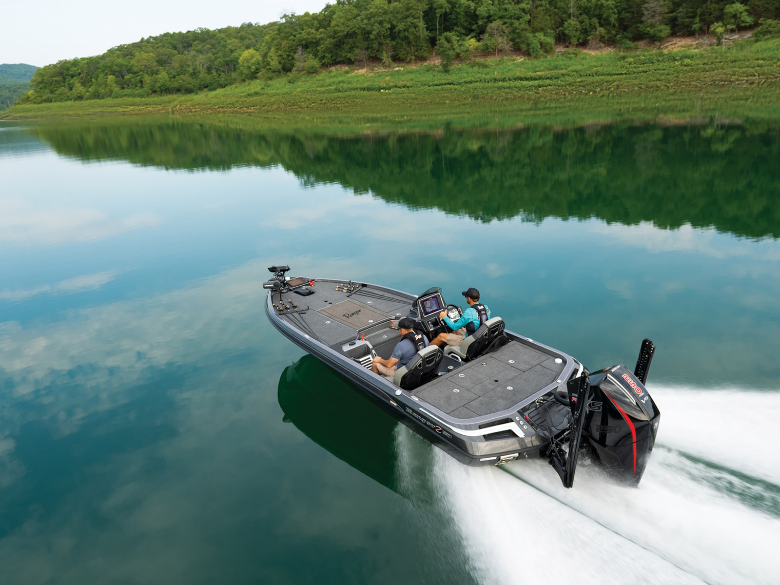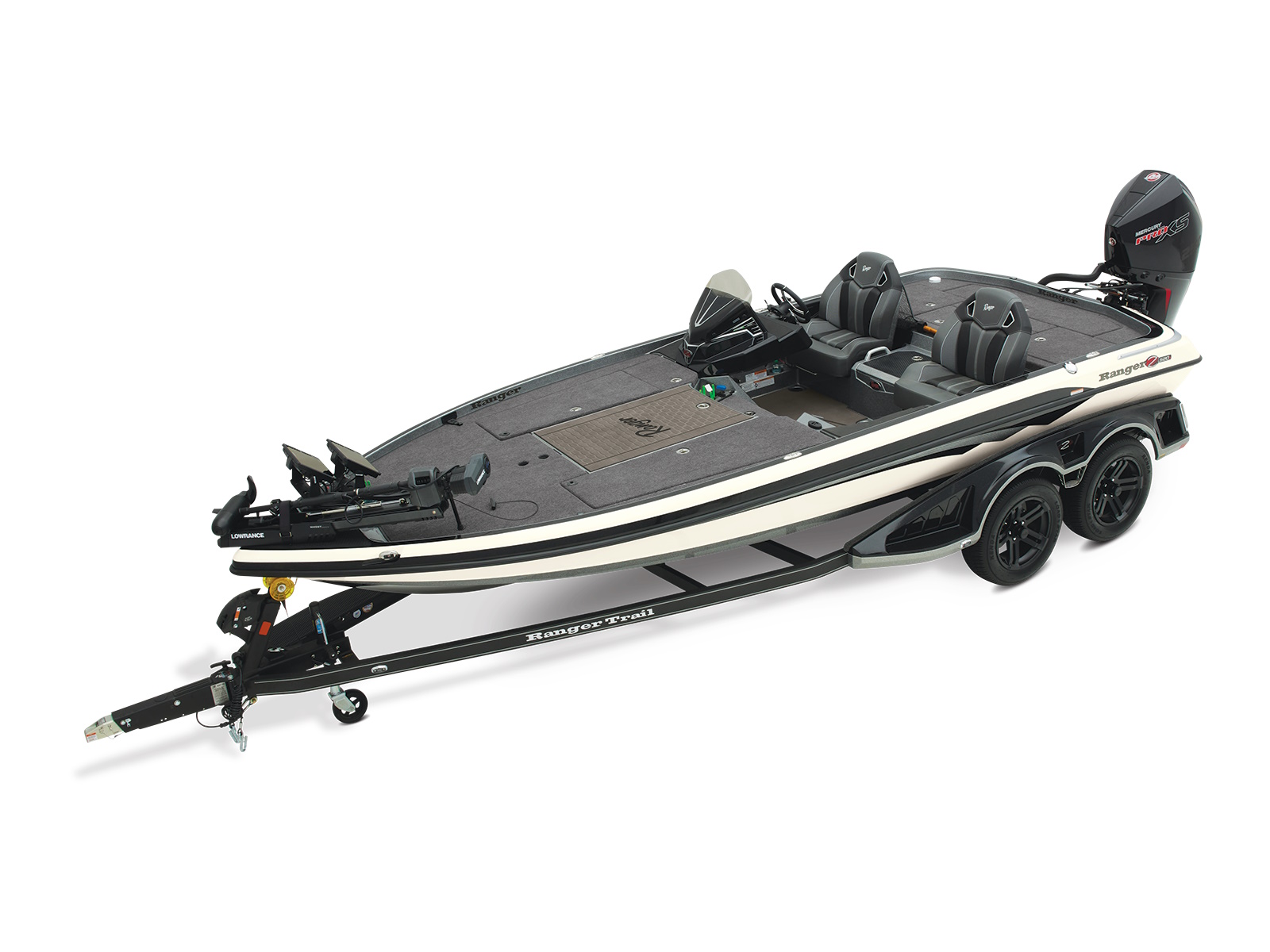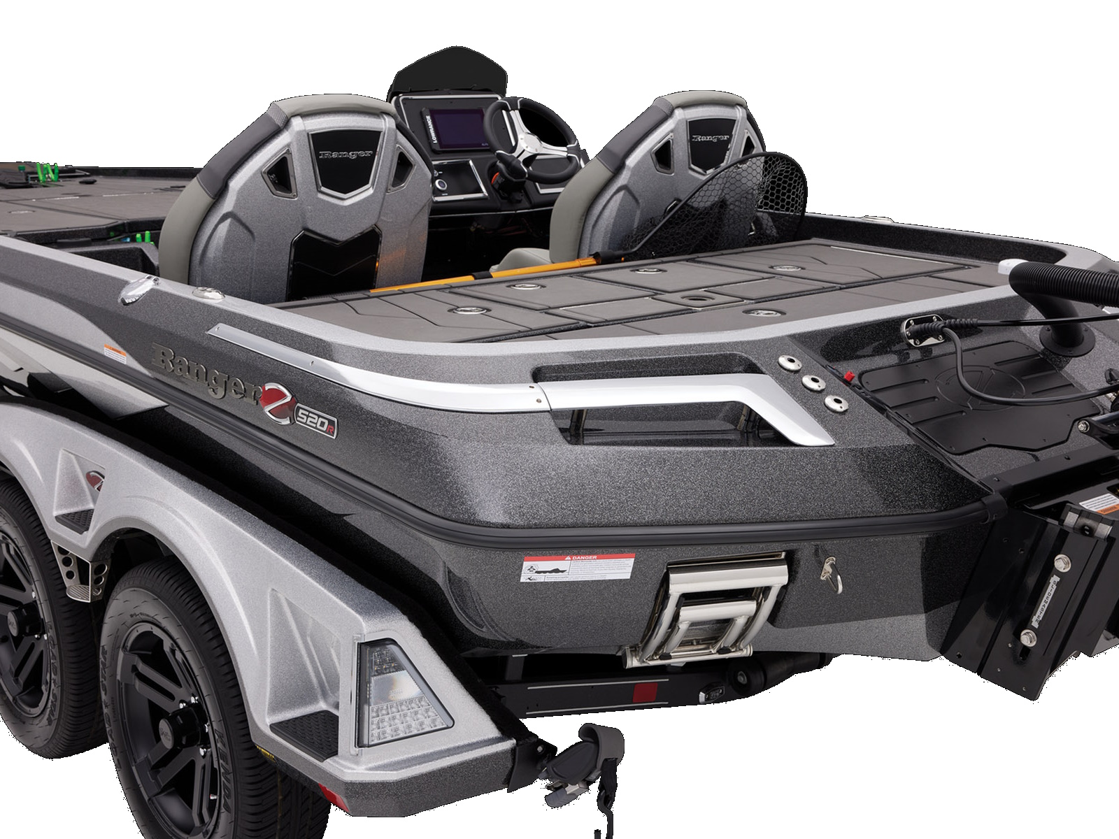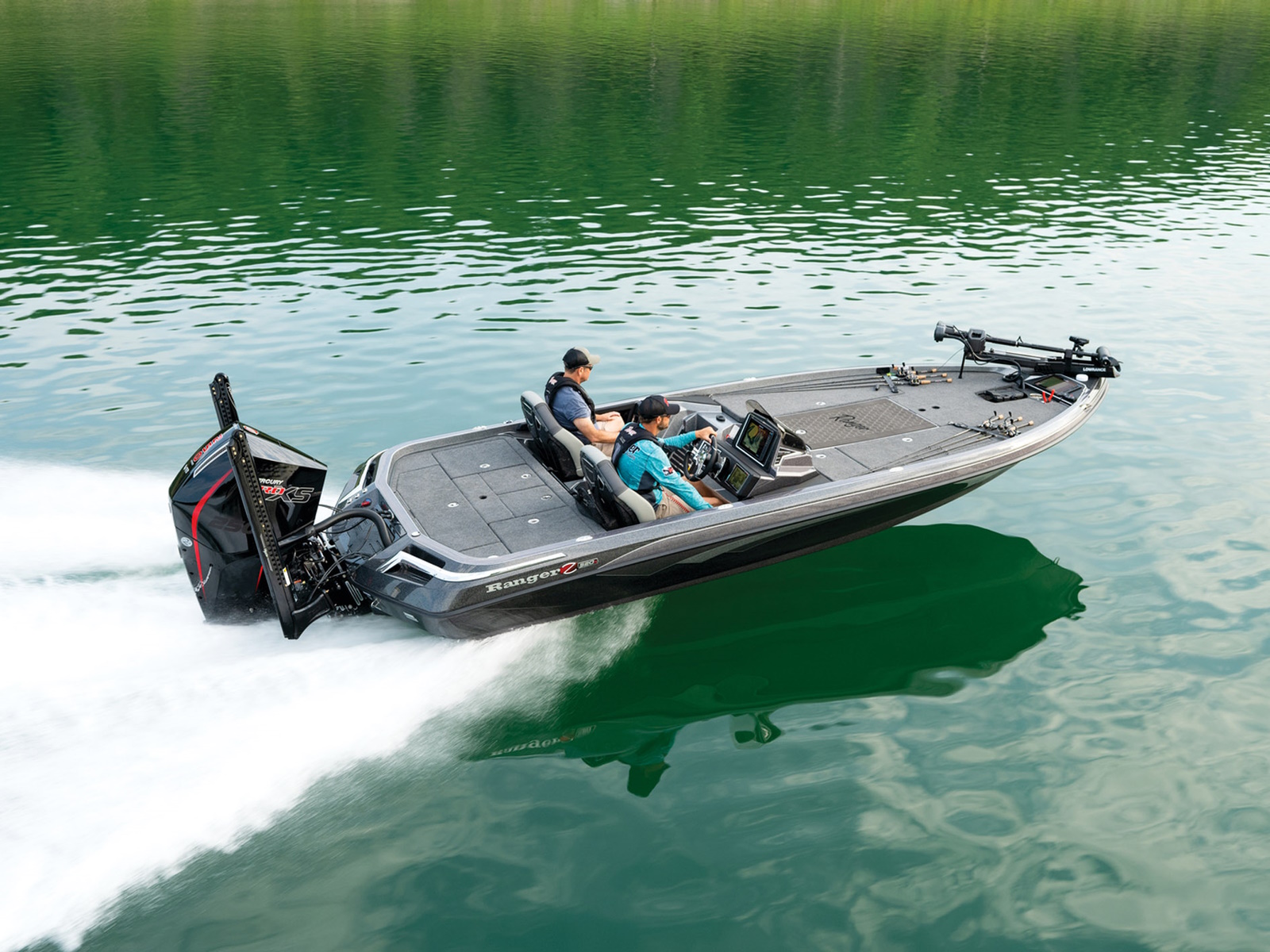 An all-new console carries dual graphs or a single 16” unit and the touchscreen Ranger R.I.D.E. system integrates total control over every boat and engine function. The all-new seats rest on easy-to-adjust slides and the color-matched fiberglass shellbacks take the aesthetic to a new level. A key fob and integrated push-to-start ignition let you start-up quicker and deliver greater security when you’re on the road. Inside the coin box is a wireless phone charger, and in the battery box are standard lithium batteries.