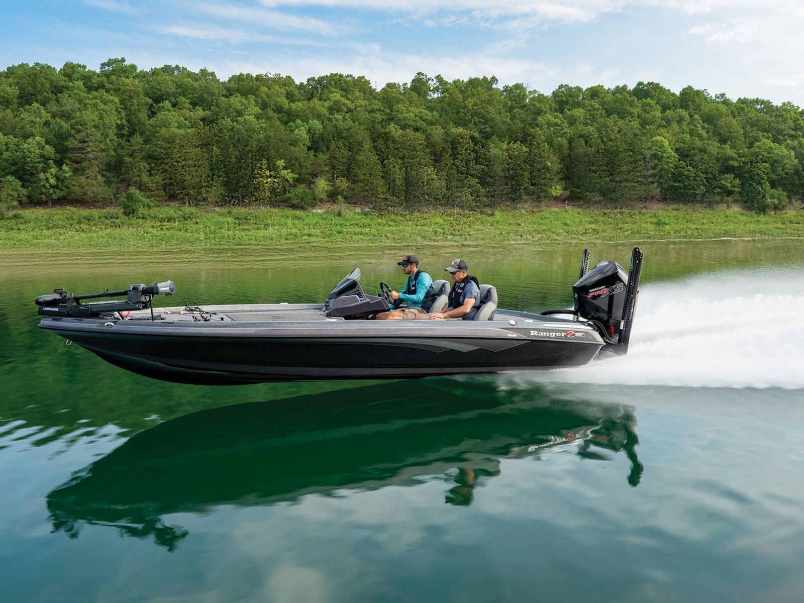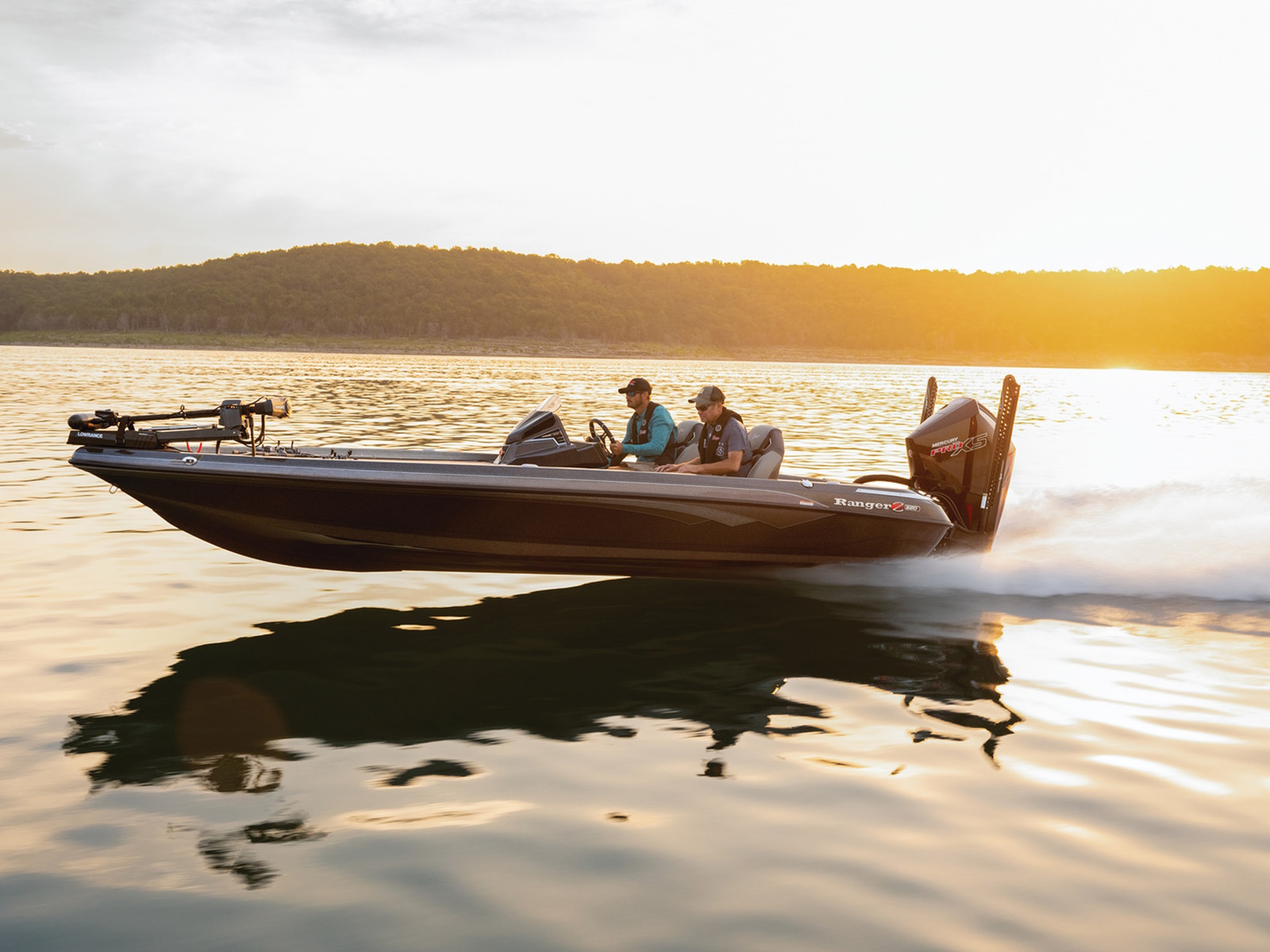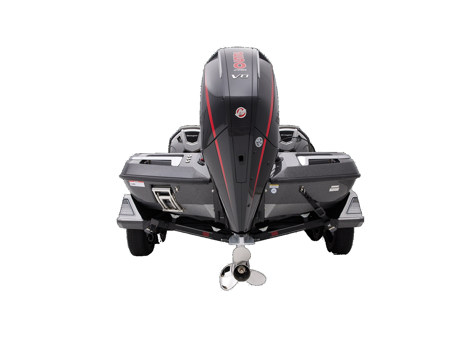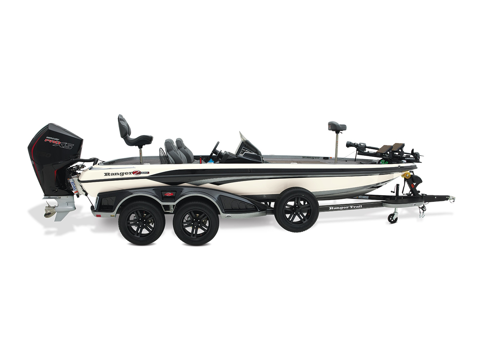An all-new console carries dual graphs or a single 16” unit and the touchscreen Ranger R.I.D.E. system integrates total control over every boat and engine function. The all-new seats rest on easy-to-adjust slides and the color-matched fiberglass shellbacks take the aesthetic to a new level. A key fob and integrated push-to-start ignition let you start-up quicker and deliver greater security when you’re on the road. Inside the coin box is a wireless phone charger, and in the battery box are standard lithium batteries.