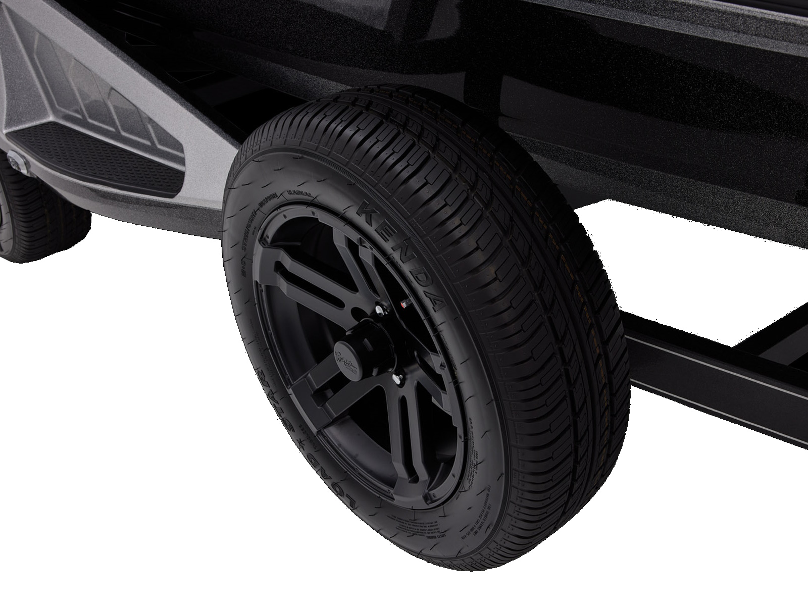 - Integrated center-swing jack finished in black powdercoat