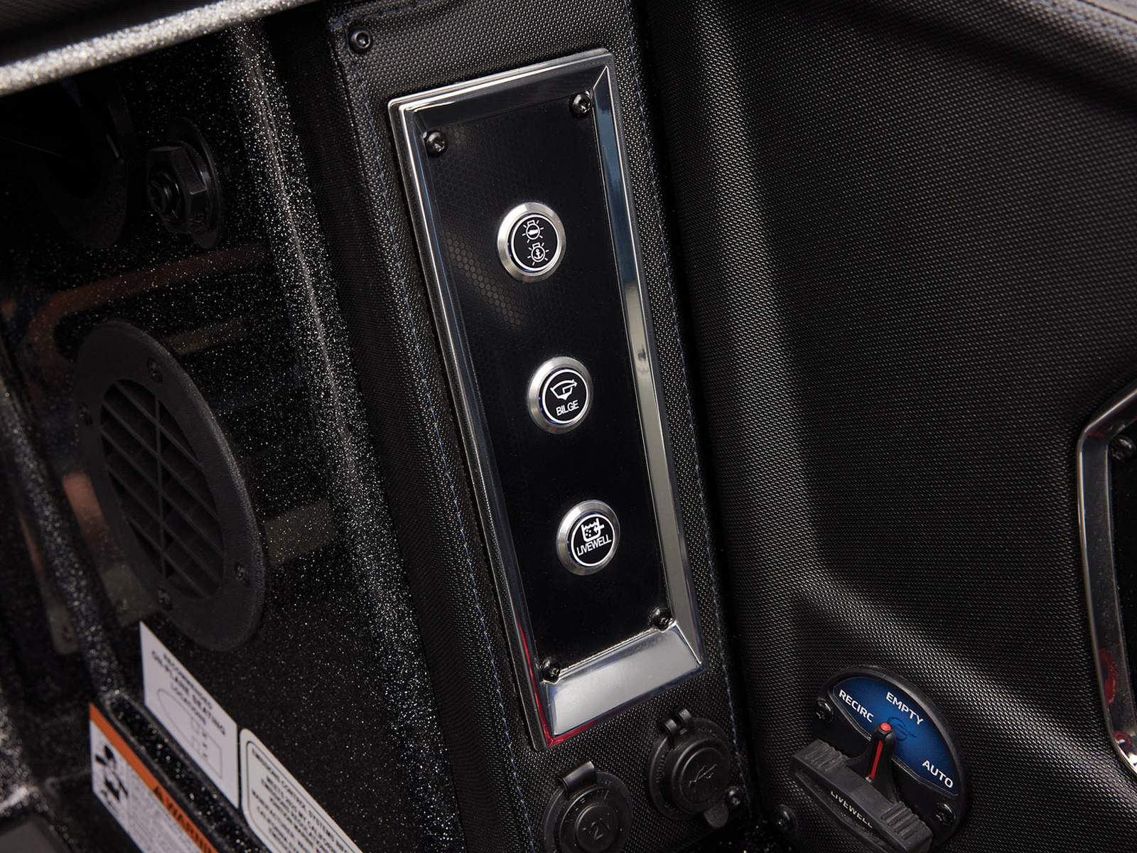 - Auto-on LED storage compartment lighting & LED courtesy & livewell lighting