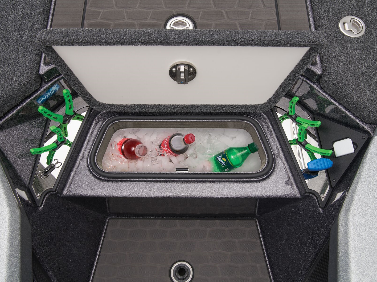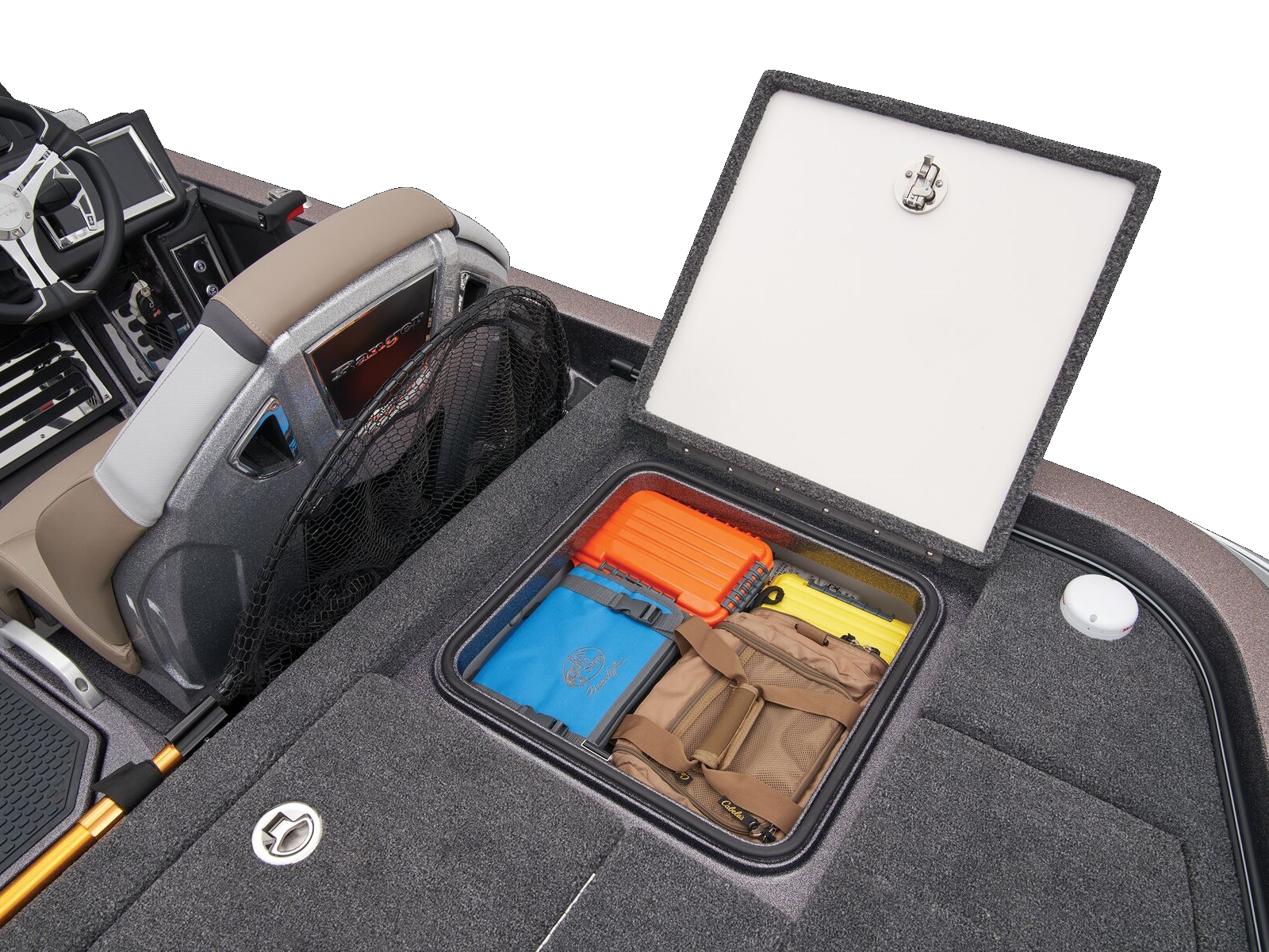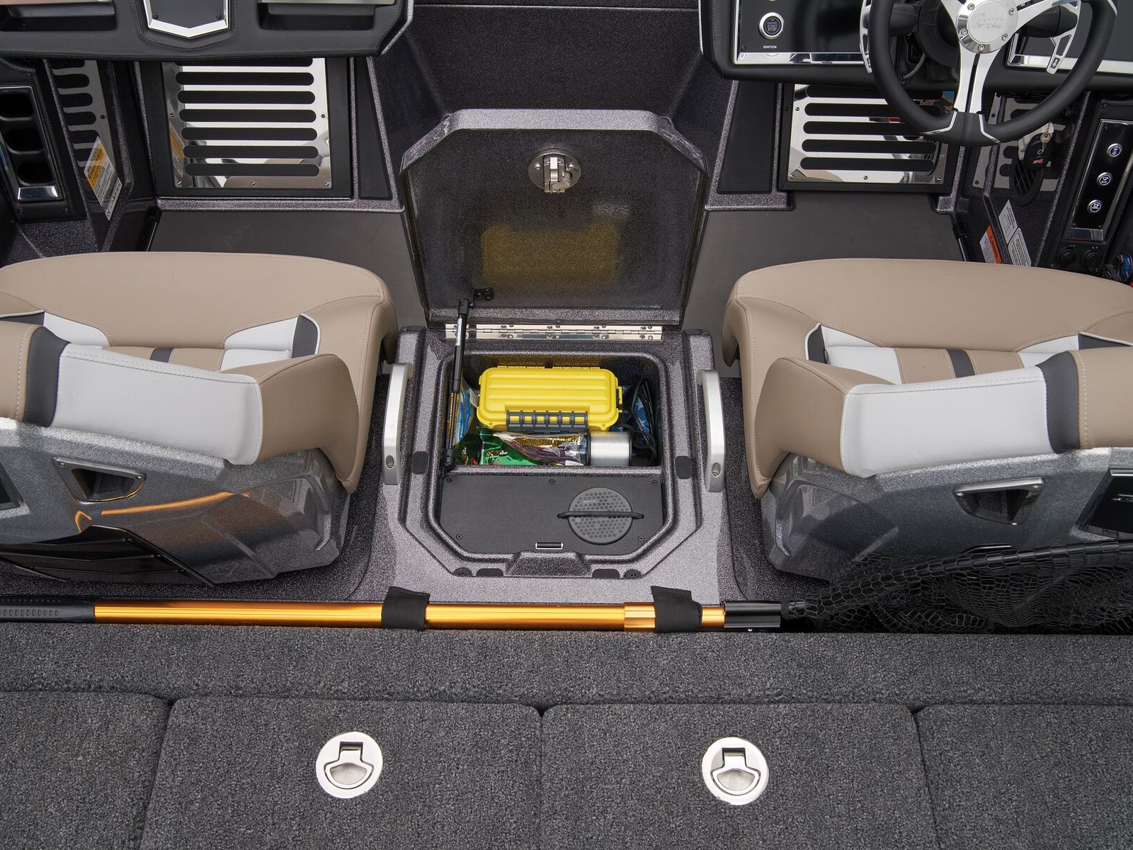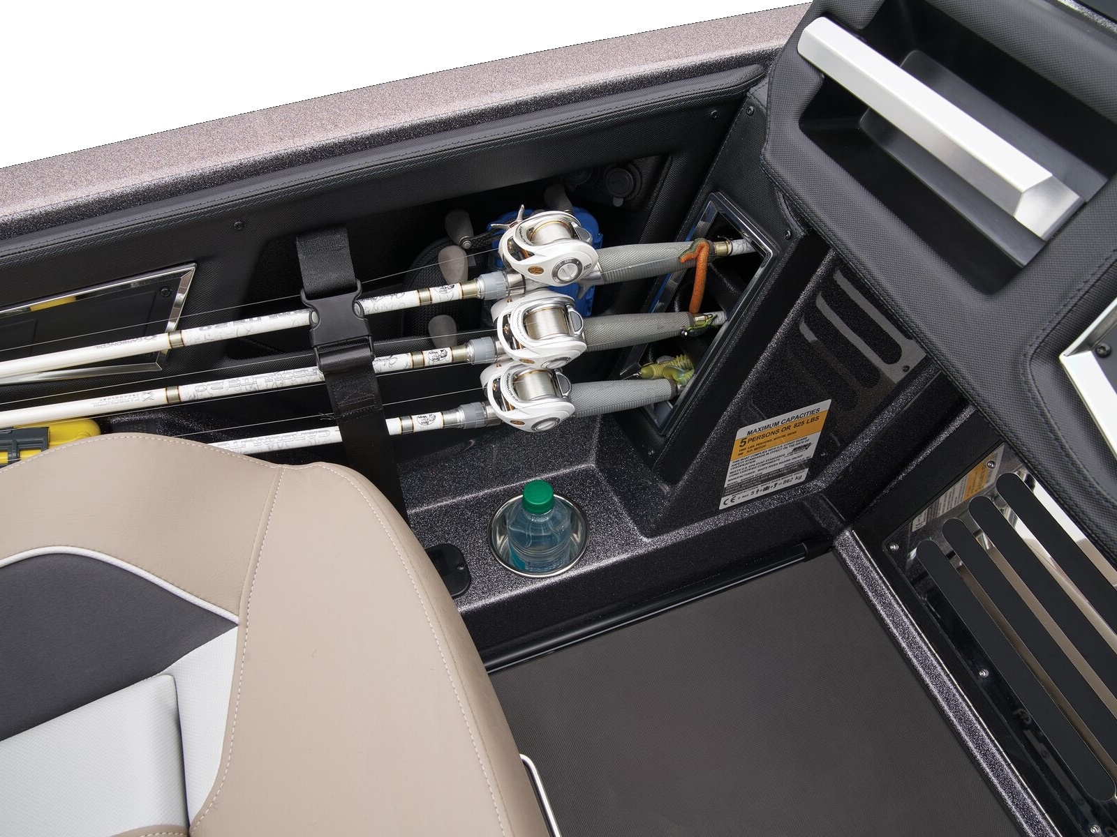 - Integrated center-storage rod & tackle management system