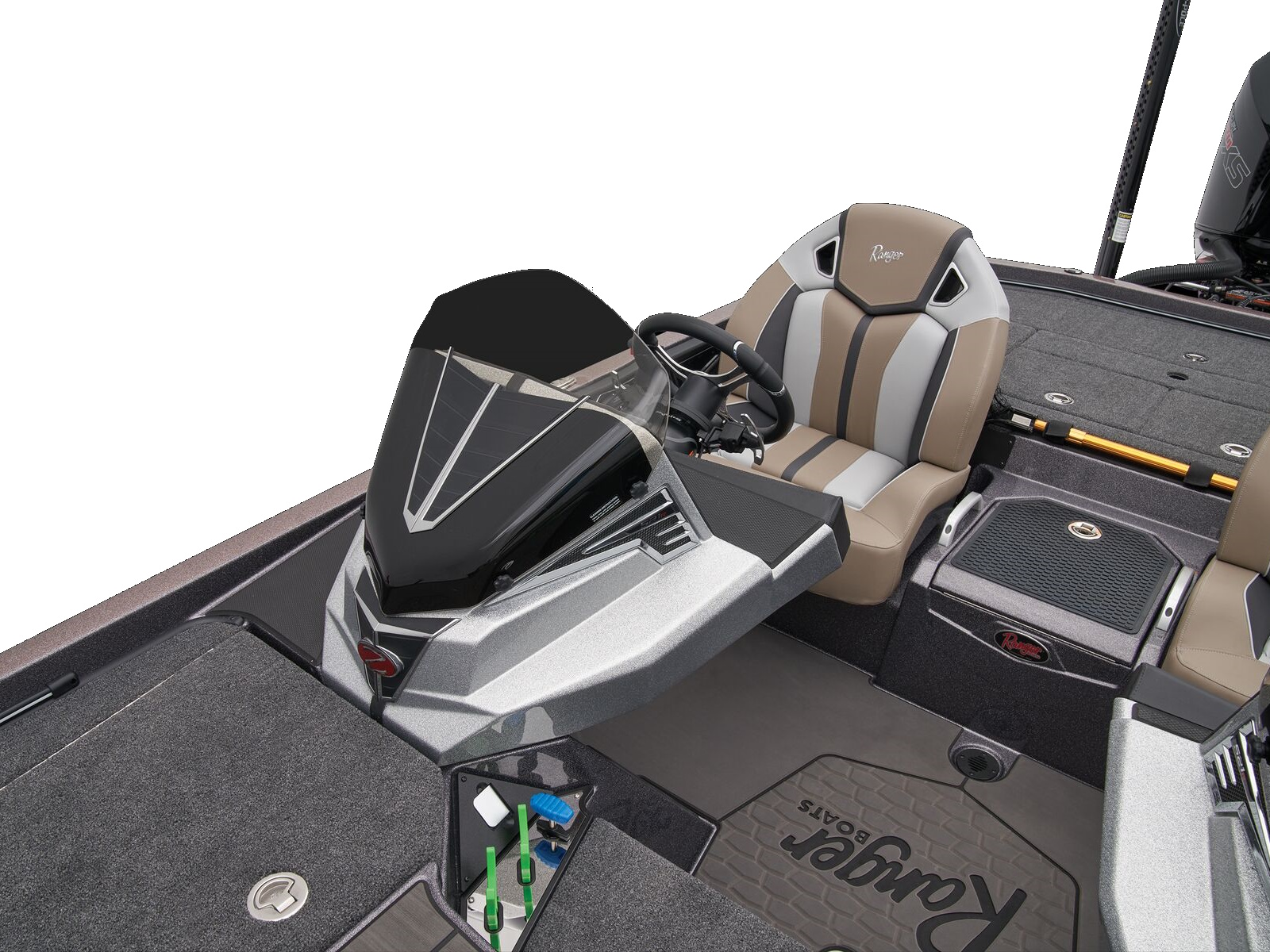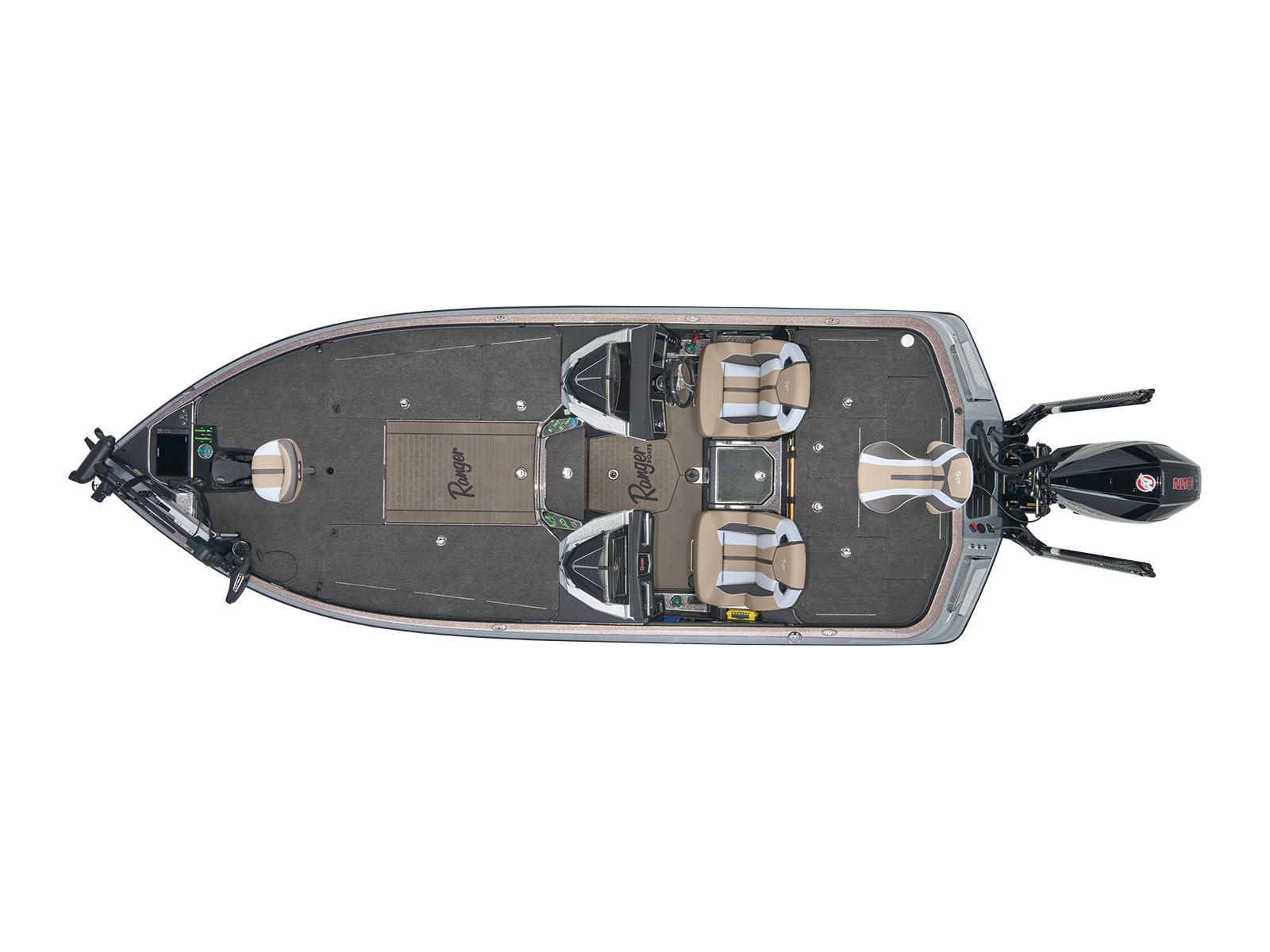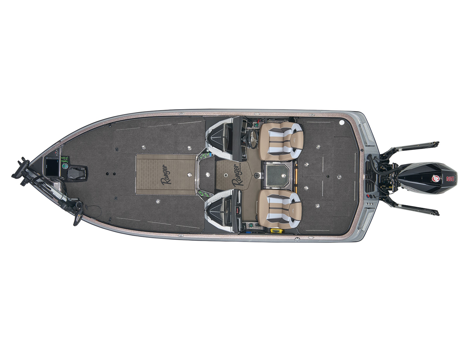 - Ranger® tournament measuring board integrated at front deck step