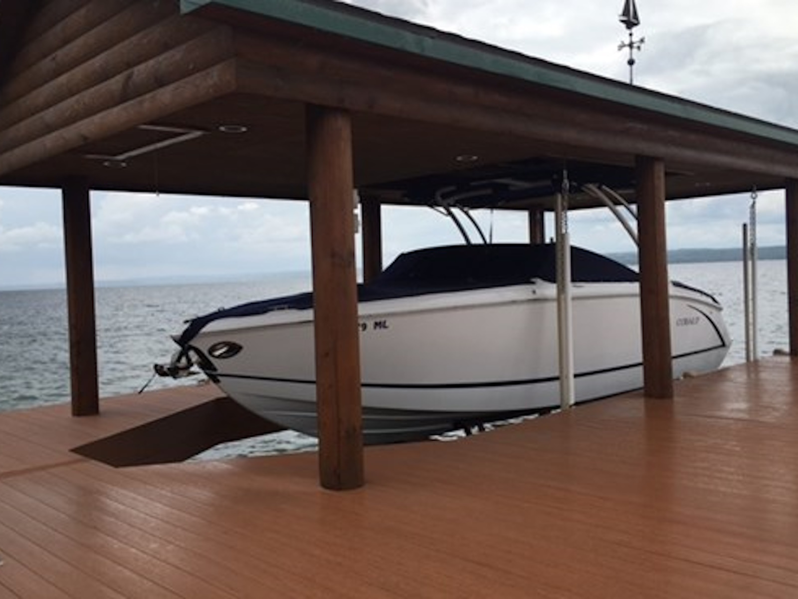 This isn’t your typical boat lift! Our unique above-the- water hydraulic design allows you to get creative so your shore-style complements your lifestyle. Install high for tidal fluctuation, deck level for a low profile look, or deck over the platform. Hang it from the ceiling, hide it in the roof or mount it under the deck.