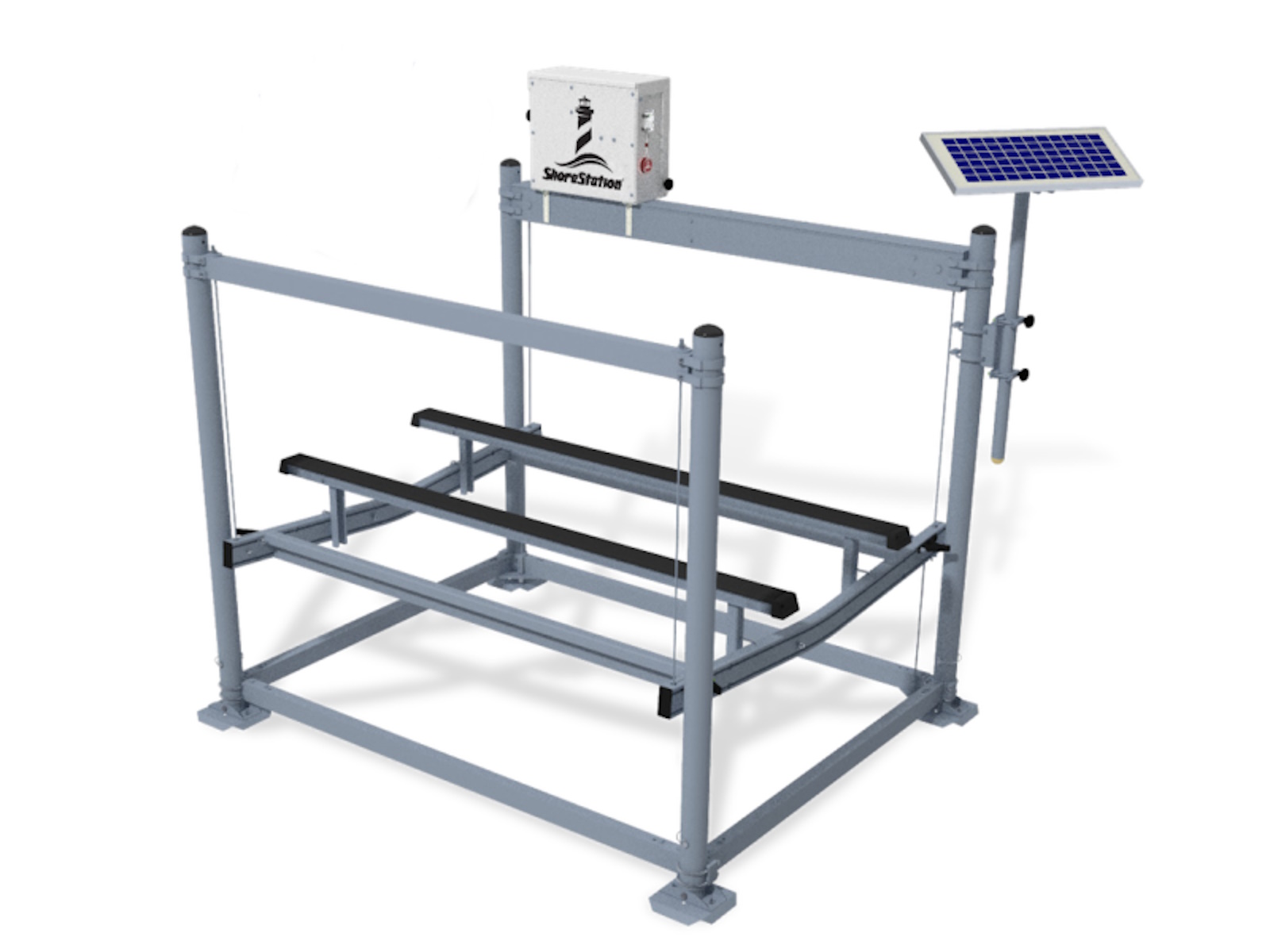 - RELIABLE BY DESIGN - With so many variables in the marine environment, deliberate design is crucial. The "high and dry" construction of the hydraulic lift keeps your essential hydraulic and electronic components above the water, minimizing their exposure to moisture and humidity. In addition, the solar-powered, DC operating system eliminates the need for an AC circuit on the dock, providing safety and superior performance on command. This is a lift you can rely on, day after day.