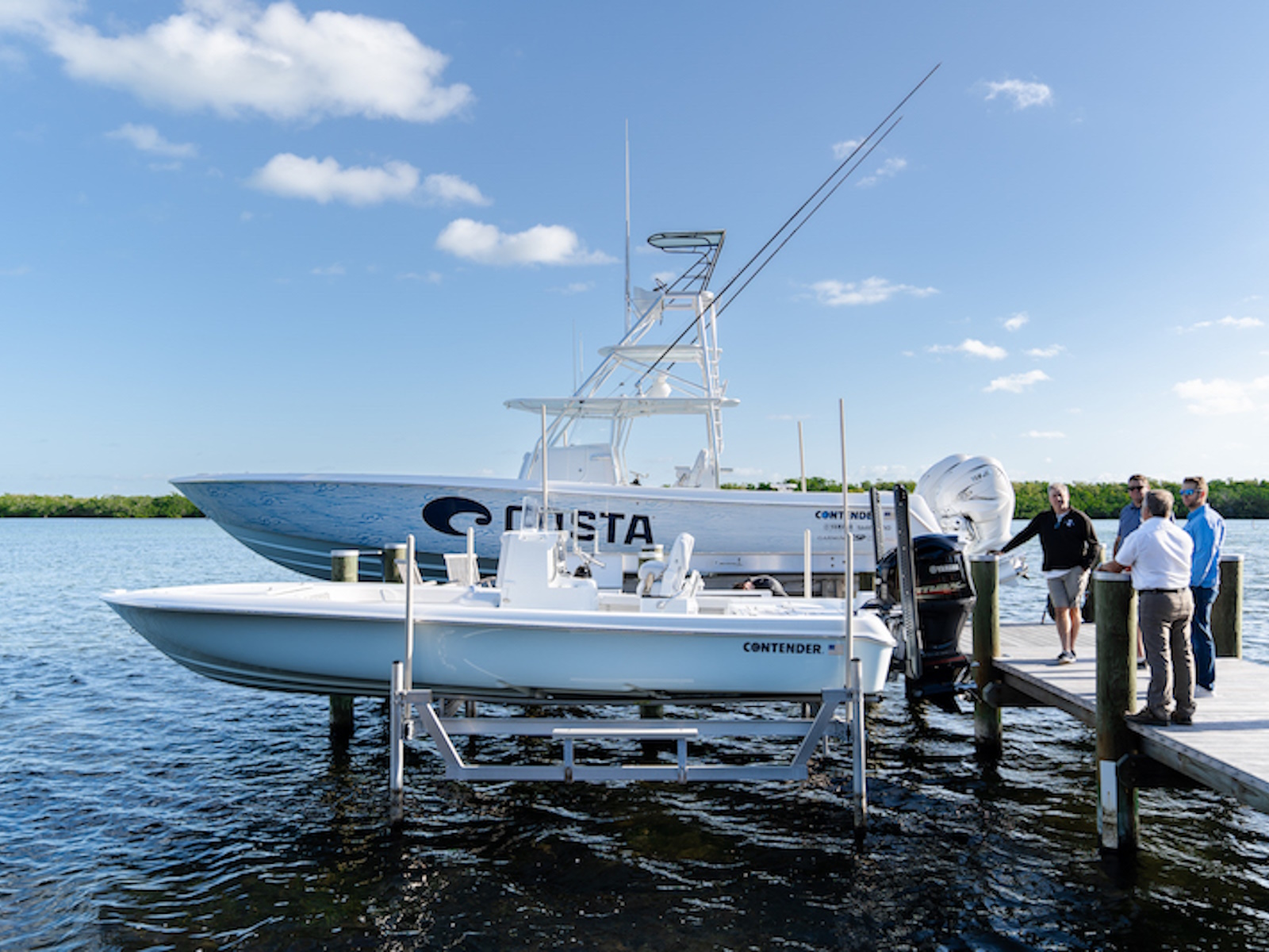 This isn’t your typical boat lift! Our unique above-the- water hydraulic design allows you to get creative so your shore-style complements your lifestyle. Install high for tidal fluctuation, deck level for a low profile look, or deck over the platform. Hang it from the ceiling, hide it in the roof or mount it under the deck.