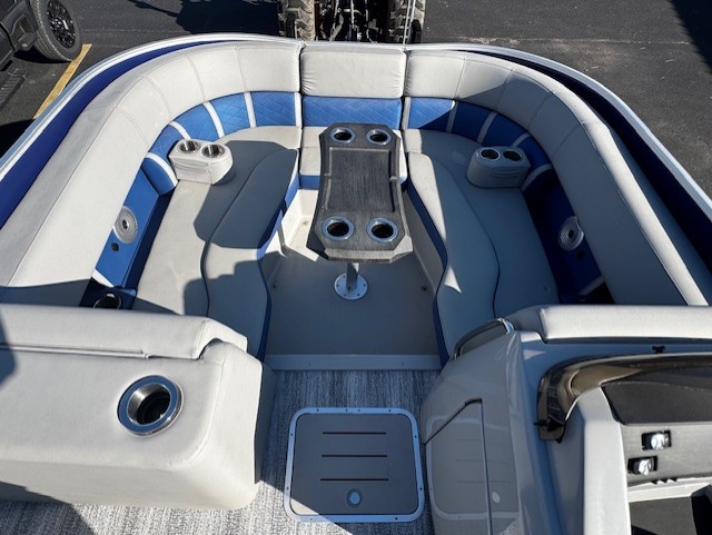 - Relaxing in the high back chaise lounges gives you access to everything you need at your fingertips with integrated cupholders and a USB charging station. And when you're ready to move aft, the console grab handle makes stepping up a breeze.