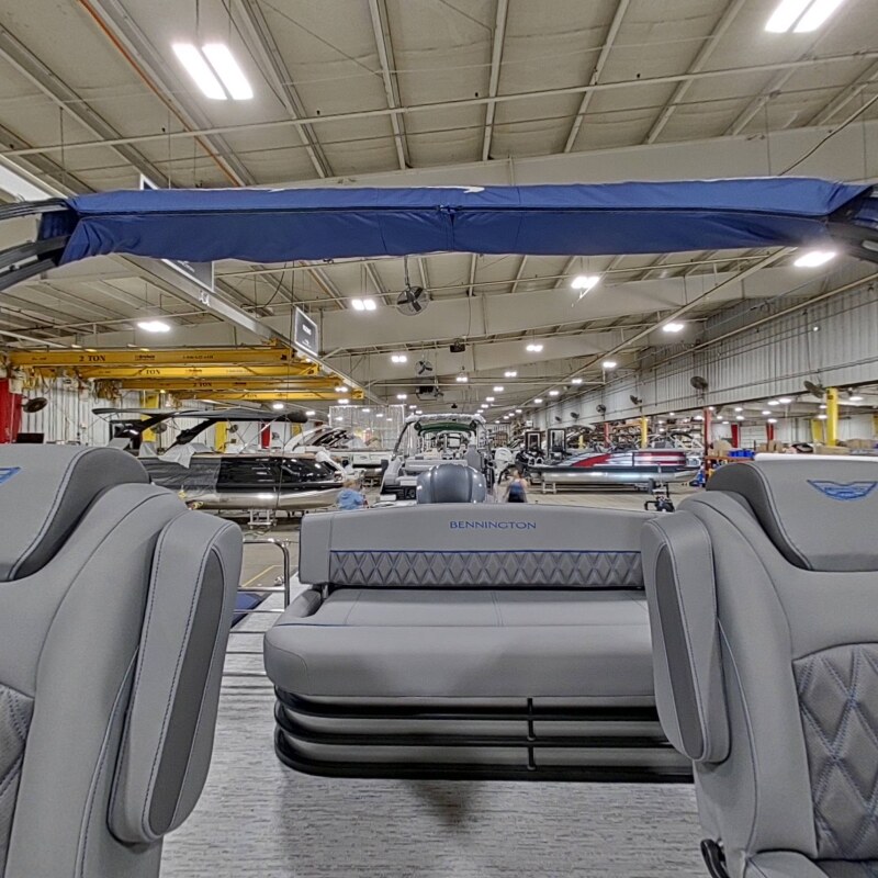 Stand out with style and sophistication. Bennington's custom winged logos and embroidery add a unique and premium touch to your boat, exuding luxury on the water.